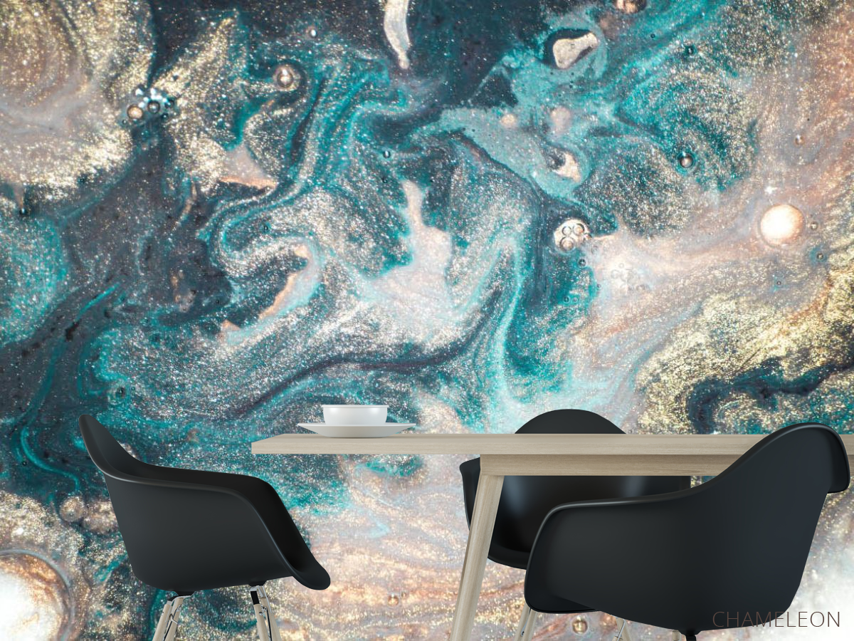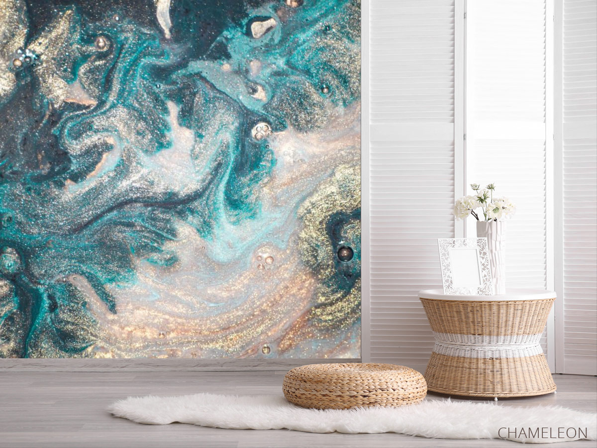 Фотошпалери Золотий флюїд з бірюзою, (арт. 25023) - купити в інтернет-магазині Chameleon