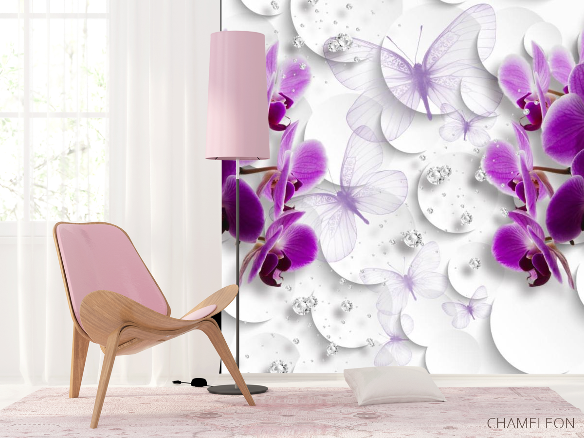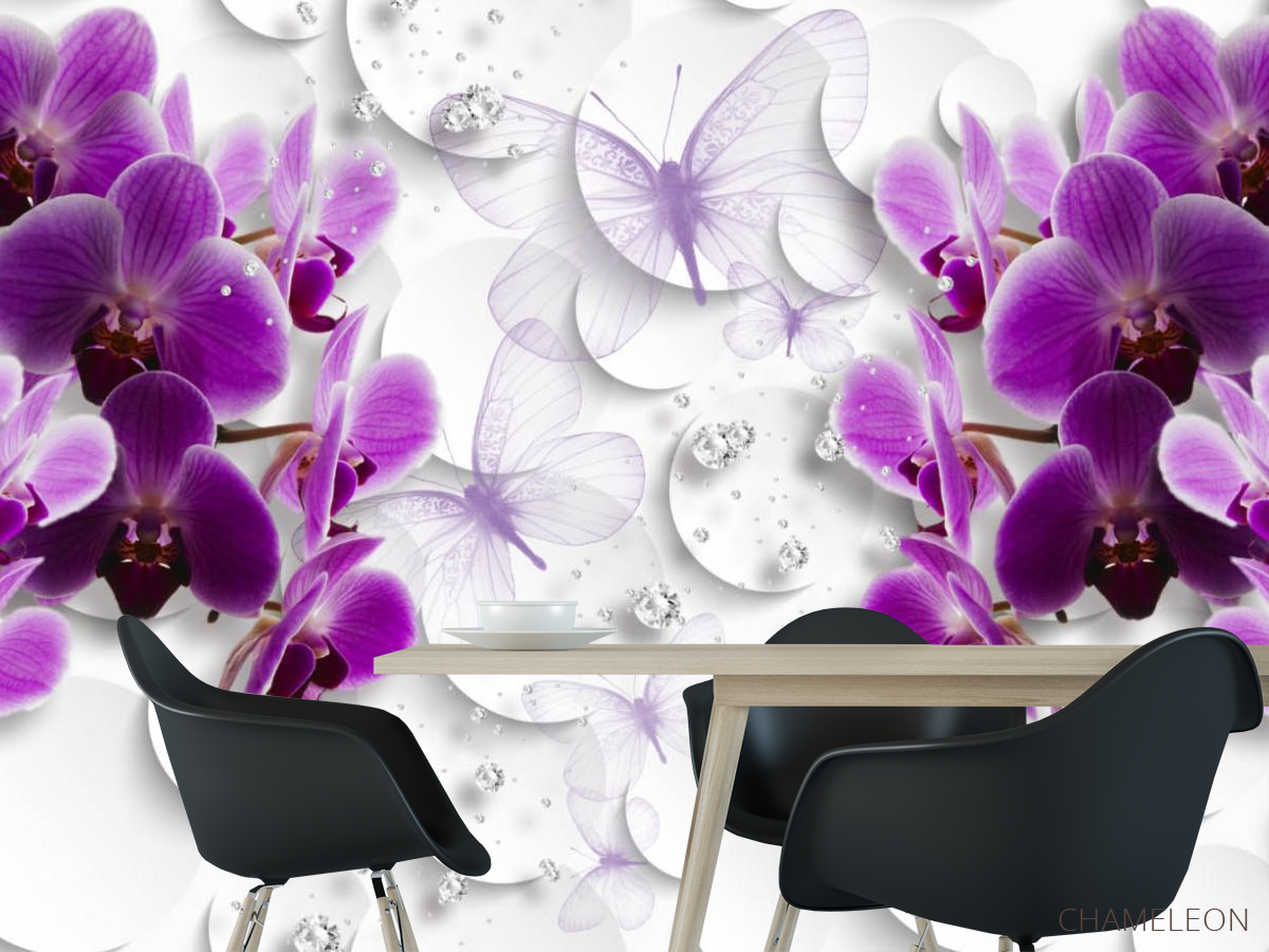 Фотошпалери Фіолетові орхідеї 3д, (арт. 25575) - купити в інтернет-магазині Chameleon