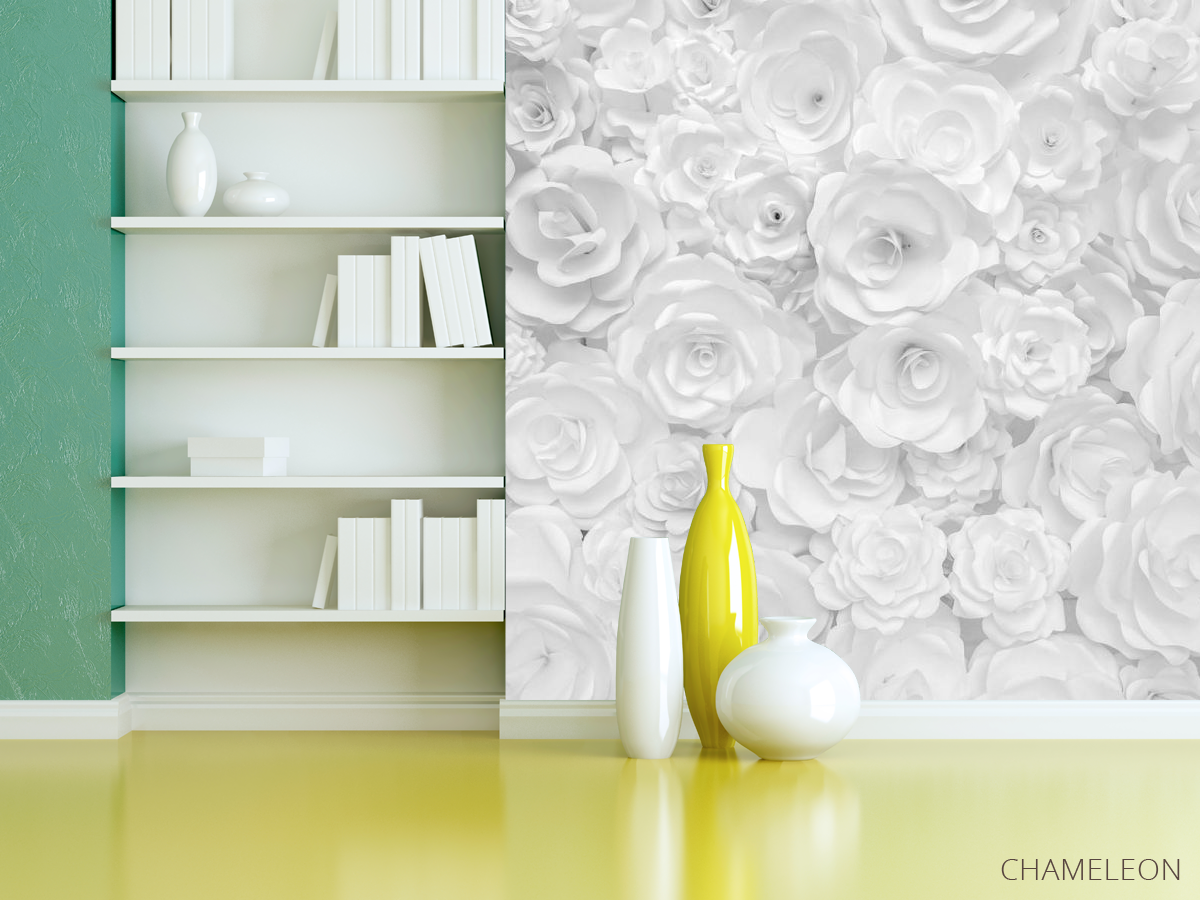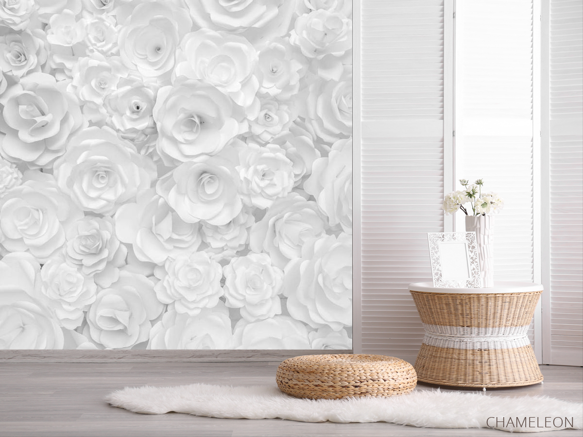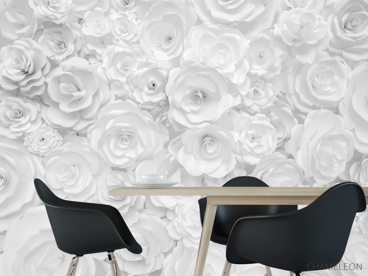 Фотошпалери Біла стіна з паперових квітів, (арт. 25630) - купити в інтернет-магазині Chameleon