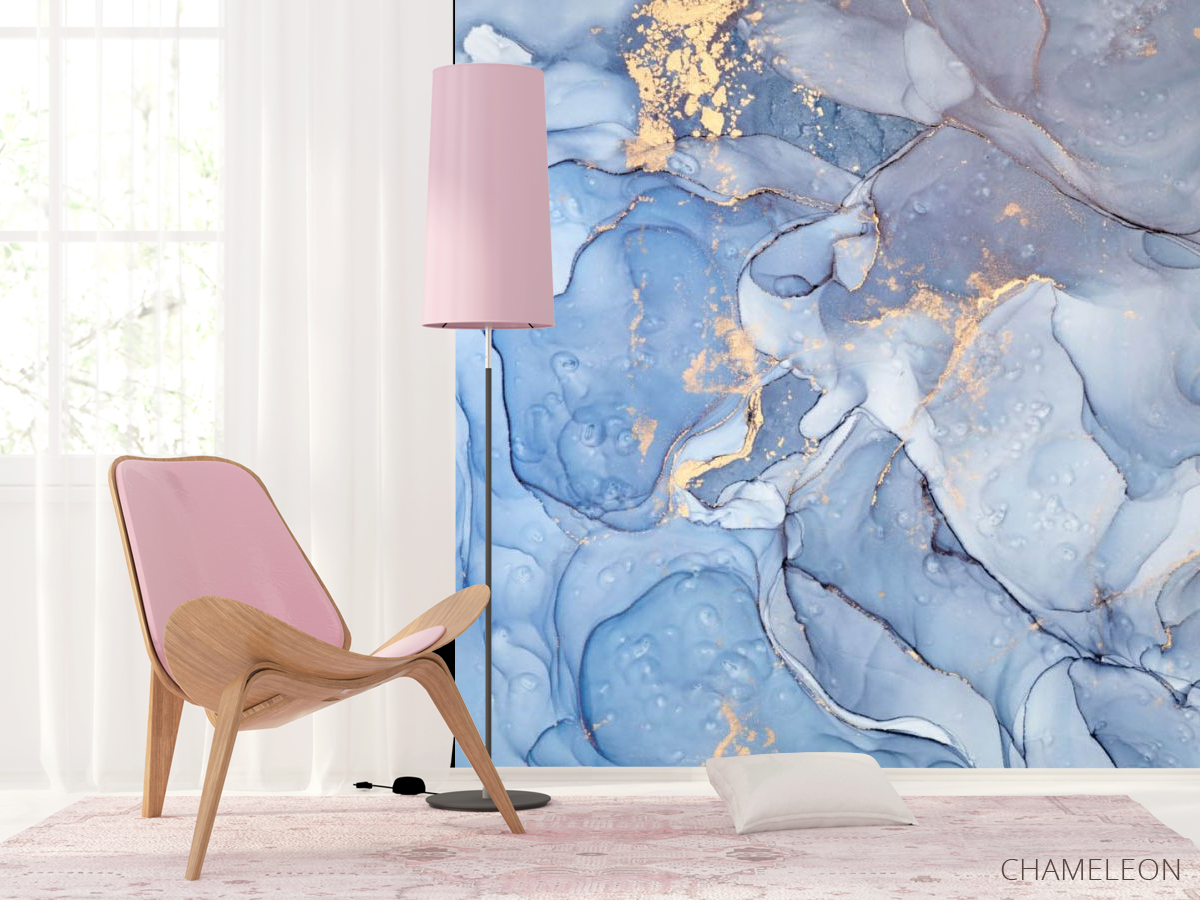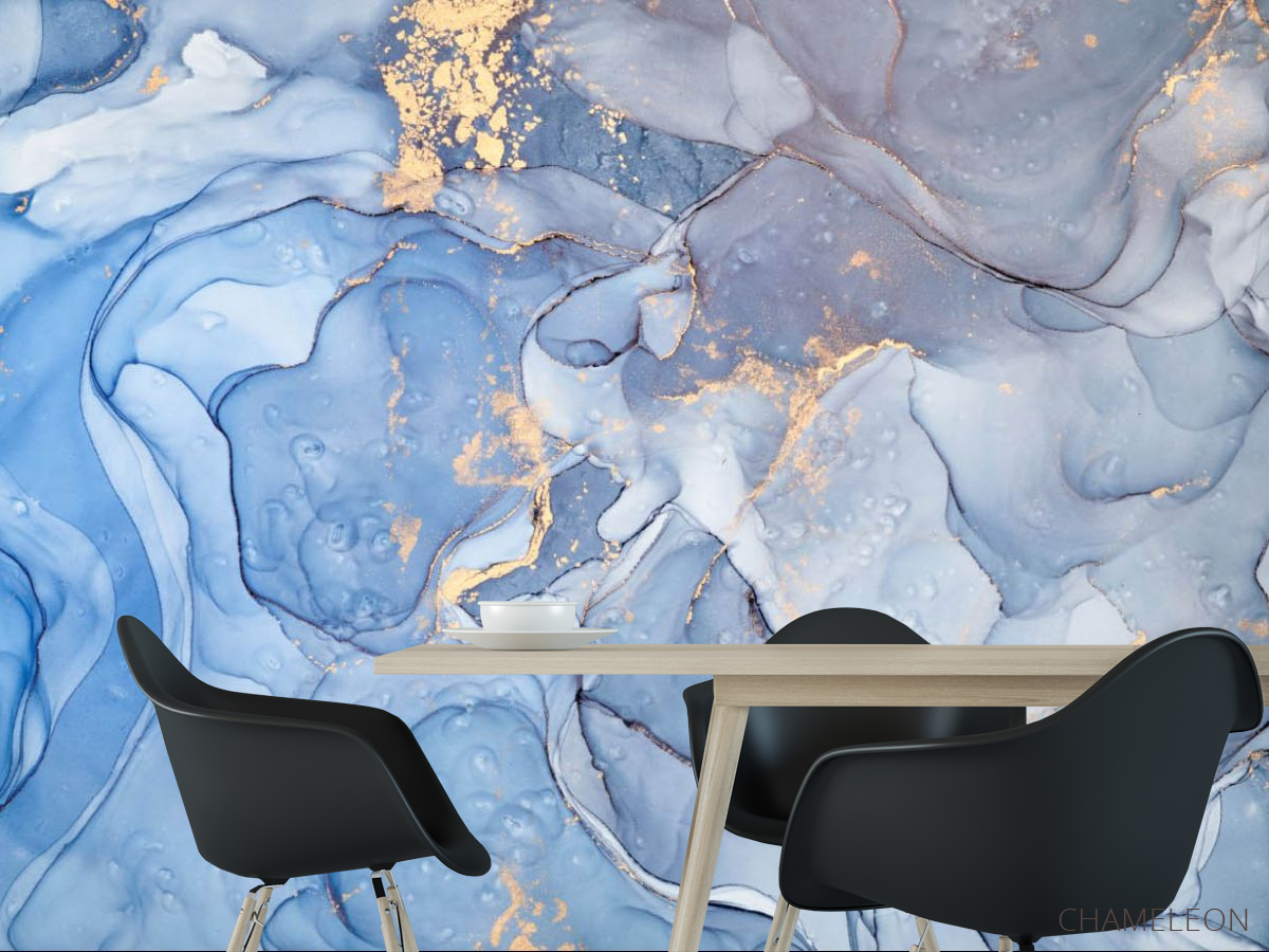 Фотошпалери Блакитний Fluid art з золотом, (арт. 25749) - купити в інтернет-магазині Chameleon