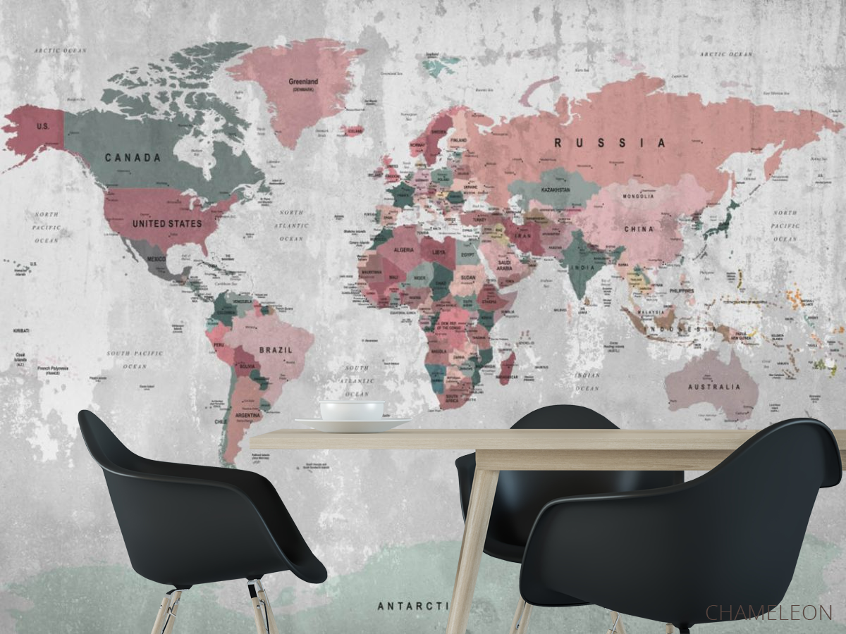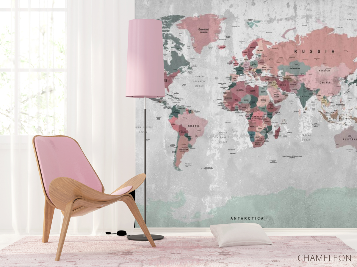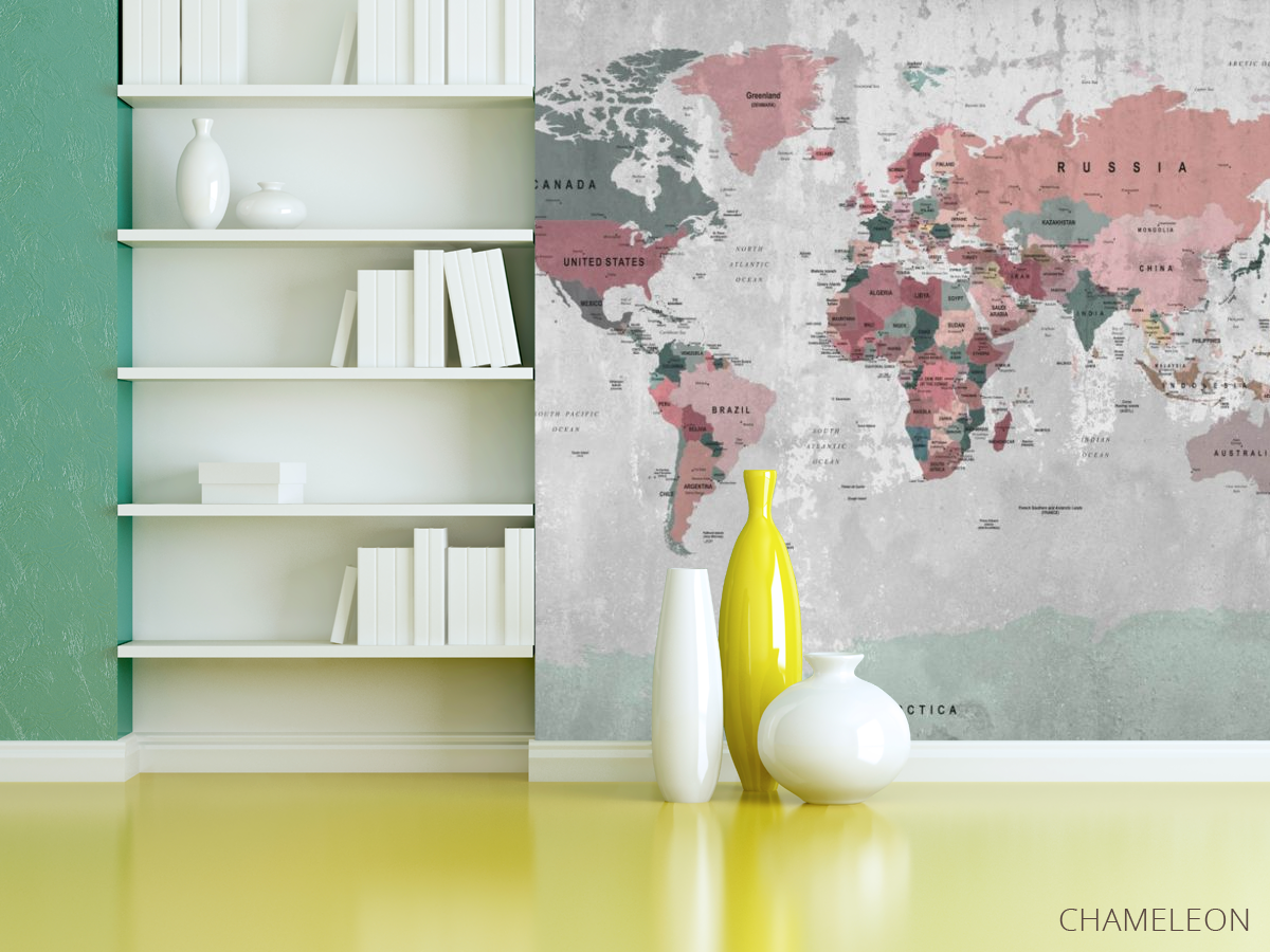 Фотошпалери карта світу є дуже хорошим вибором як для будинку (в вітальню, робочий кабінет або кухню), так і для інших будівель (в школу, ресторан або салон краси). Вони виглядають розкішно, мають стильний дизайн і відмінно підходять під будь-яке оформлення кімнати. Сучасні фотошпалери на стіну виробляються з надійного матеріалу, який не псується і не дряпається. Зображення - це повністю безпечна фарба, яка не викликає алергії, а також залишається красивим протягом багатьох років. Ви можете впевнено використовувати шпалери, які прикрасять будь-яке приміщення. Купити стильні і оригінальні фотошпалери з картою світу можна в інтернет-магазині Chameleons.
