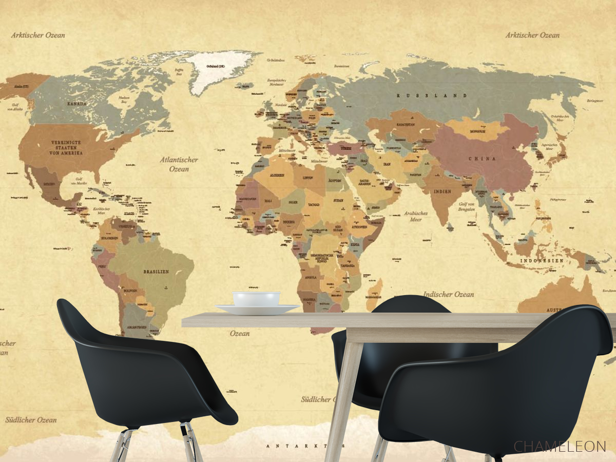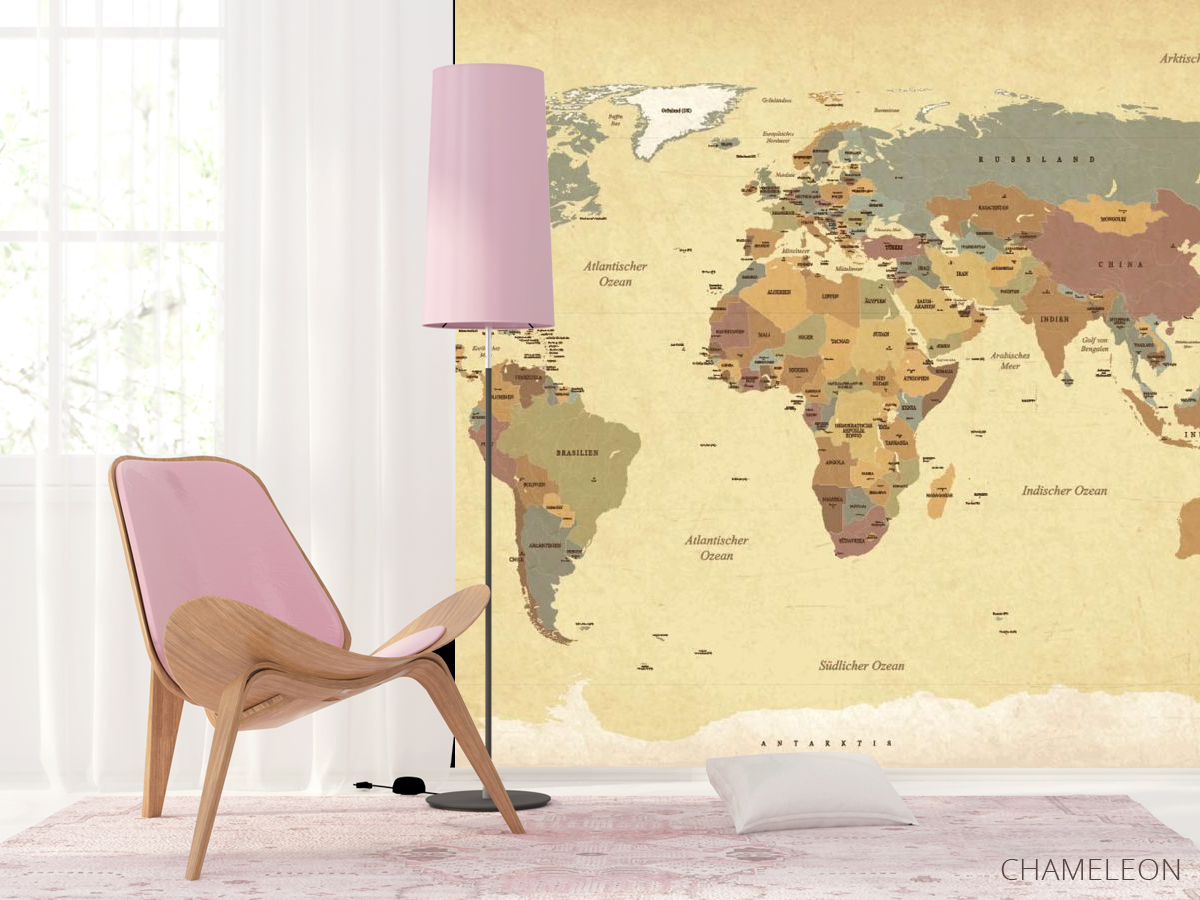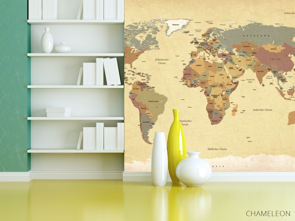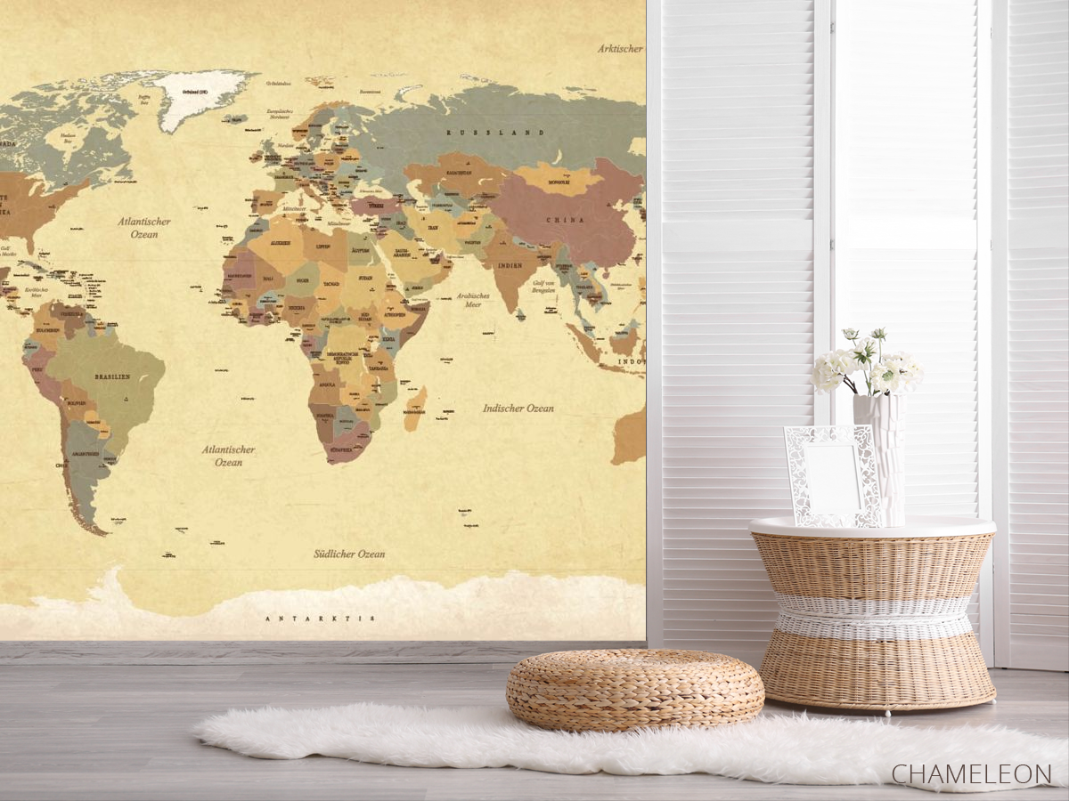 Фотошпалери карта світу є дуже хорошим вибором як для будинку (в вітальню, робочий кабінет або кухню), так і для інших будівель (в школу, ресторан або салон краси). Вони виглядають розкішно, мають стильний дизайн і відмінно підходять під будь-яке оформлення кімнати. Сучасні фотошпалери на стіну виробляються з надійного матеріалу, який не псується і не дряпається. Зображення - це повністю безпечна фарба, яка не викликає алергії, а також залишається красивим протягом багатьох років. Ви можете впевнено використовувати шпалери, які прикрасять будь-яке приміщення. Купити стильні і оригінальні фотошпалери з картою світу можна в інтернет-магазині Chameleons.