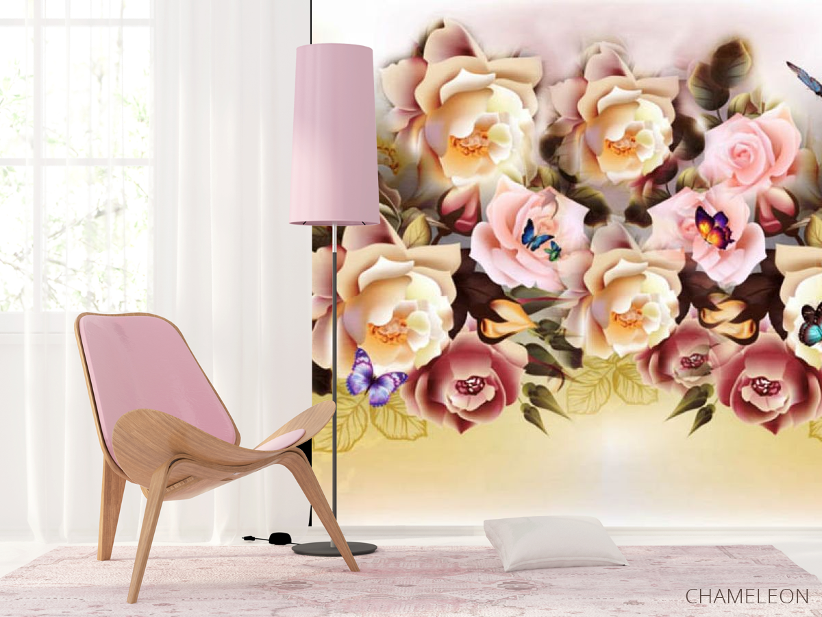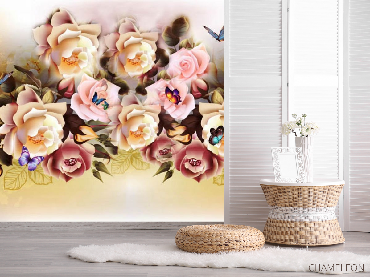 Фотошпалери мікс квітів з метеликами, (арт. 27432) - купити в інтернет-магазині Chameleon