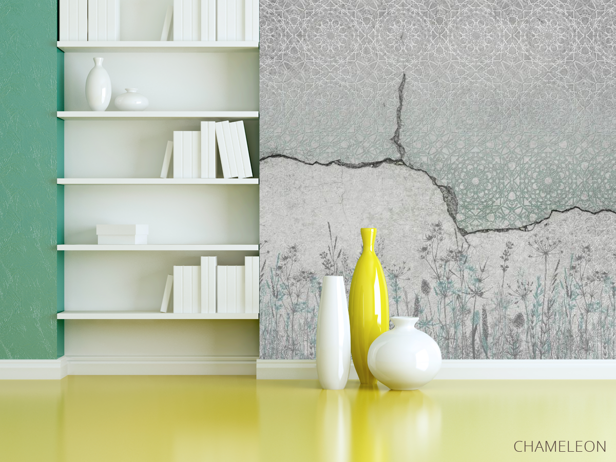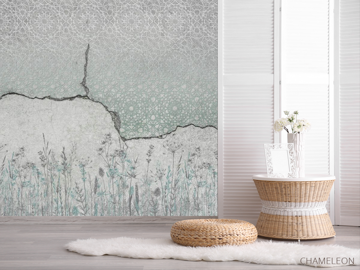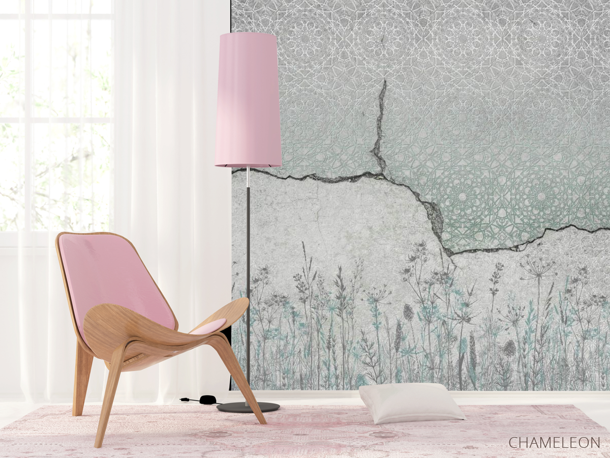 Фотошпалери Бетон з візерунком і ботанікою, (арт. 27582) - купити в інтернет-магазині Chameleon