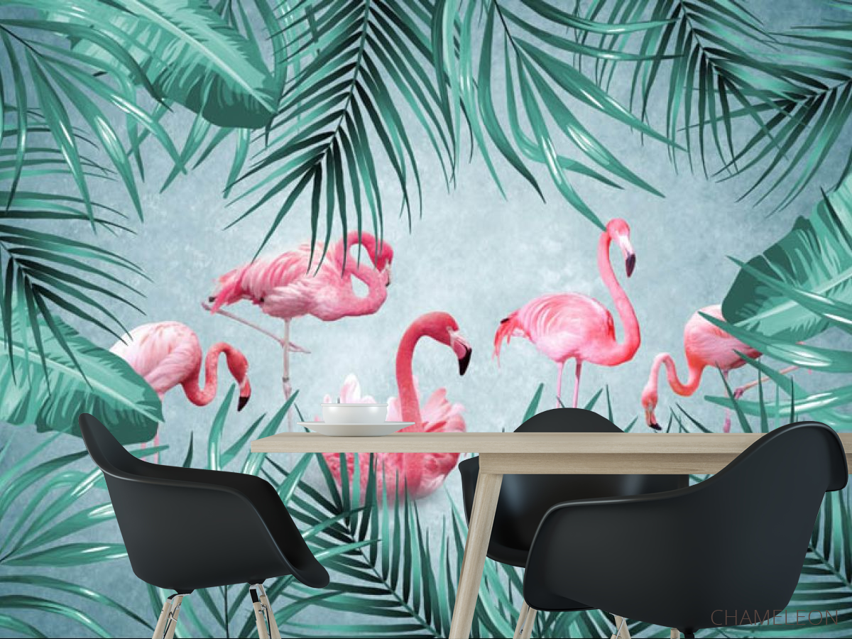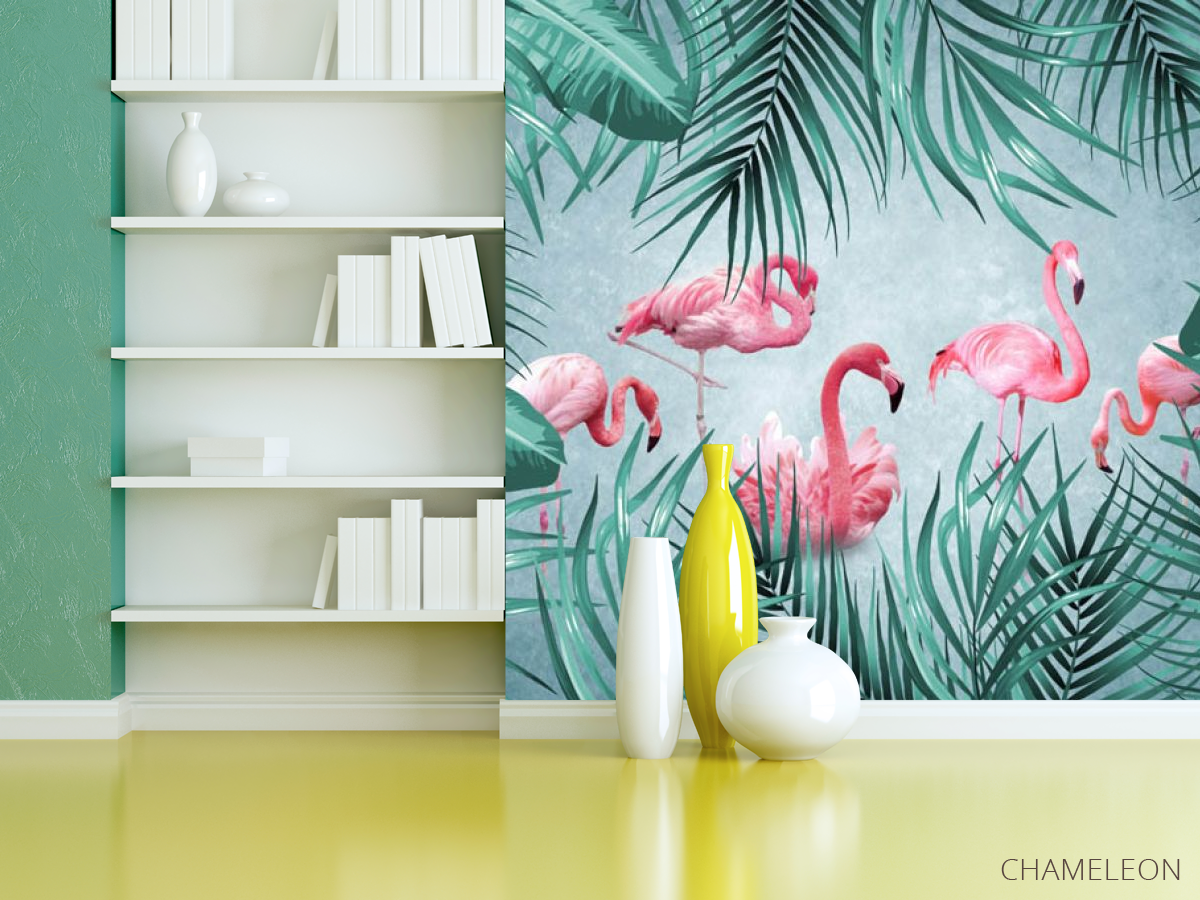 Фотошпалери фламінго на тропічних листках, (арт. 27623) - купити в інтернет-магазині Chameleon