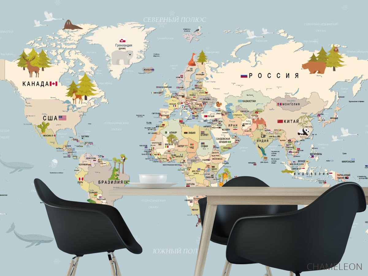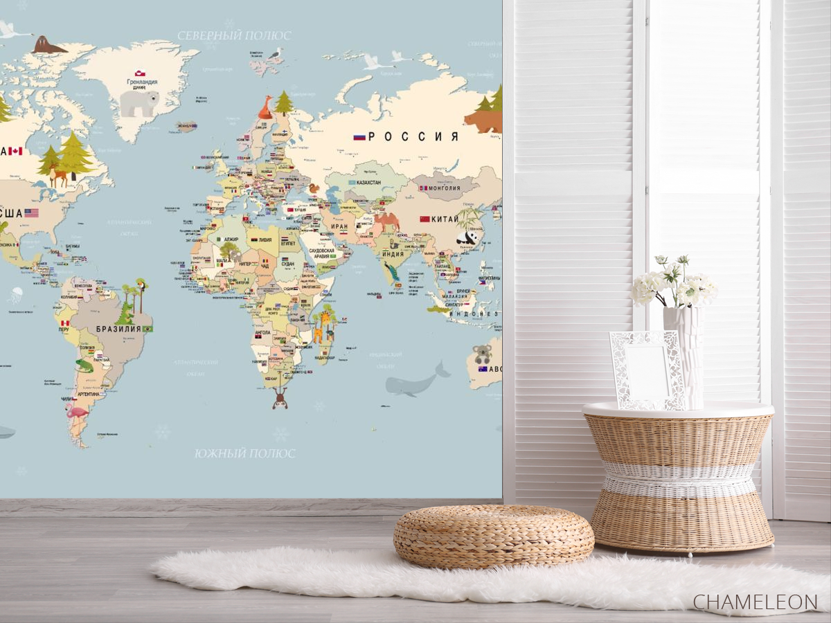 Фотошпалери карта світу є дуже хорошим вибором як для будинку (в вітальню, робочий кабінет або кухню), так і для інших будівель (в школу, ресторан або салон краси). Вони виглядають розкішно, мають стильний дизайн і відмінно підходять під будь-яке оформлення кімнати. Сучасні фотошпалери на стіну виробляються з надійного матеріалу, який не псується і не дряпається. Зображення - це повністю безпечна фарба, яка не викликає алергії, а також залишається красивим протягом багатьох років. Ви можете впевнено використовувати шпалери, які прикрасять будь-яке приміщення. Купити стильні і оригінальні фотошпалери з картою світу можна в інтернет-магазині Chameleons.