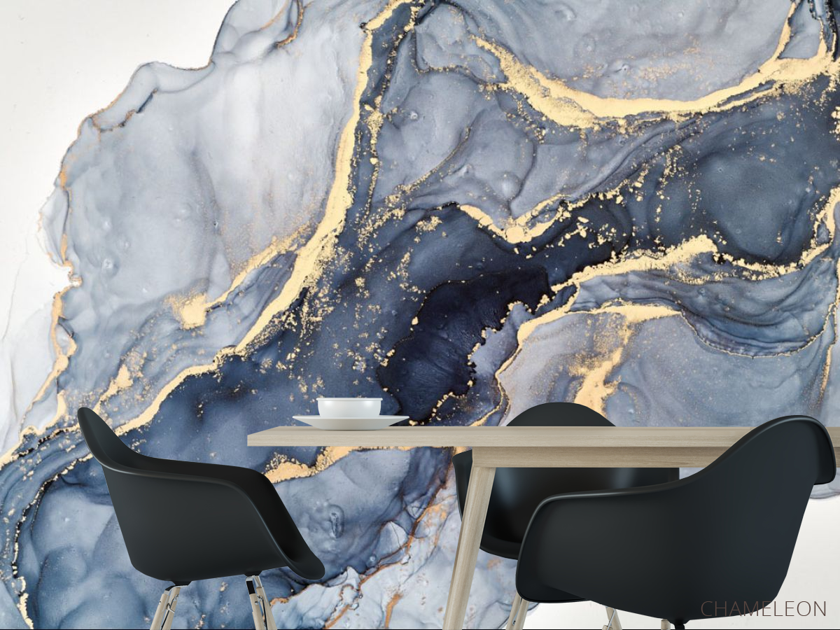 Фотошпалери синій флюїд з золотом, (арт. 28293g) - купити в інтернет-магазині Chameleon