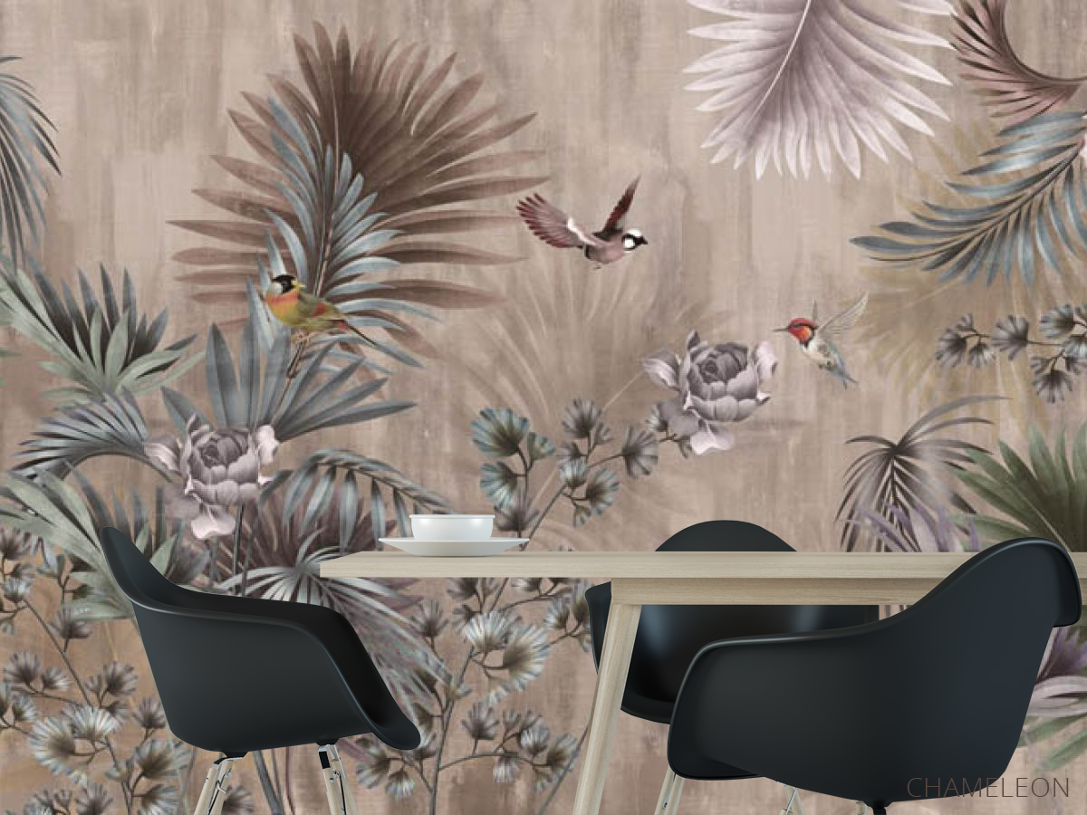 Фотошпалери тропічні листя і птиці, (арт. 28351) - купити в інтернет-магазині Chameleon