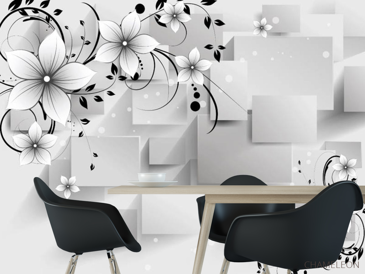 Фотошпалери 3Д Куби і квіти, (арт. 28907) - купити в інтернет-магазині Chameleon