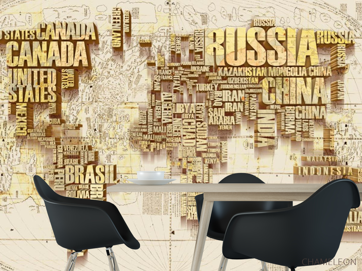 Фотошпалери карта світу є дуже хорошим вибором як для будинку (в вітальню, робочий кабінет або кухню), так і для інших будівель (в школу, ресторан або салон краси). Вони виглядають розкішно, мають стильний дизайн і відмінно підходять під будь-яке оформлення кімнати. Сучасні фотошпалери на стіну виробляються з надійного матеріалу, який не псується і не дряпається. Зображення - це повністю безпечна фарба, яка не викликає алергії, а також залишається красивим протягом багатьох років. Ви можете впевнено використовувати шпалери, які прикрасять будь-яке приміщення. Купити стильні і оригінальні фотошпалери з картою світу можна в інтернет-магазині Chameleons.