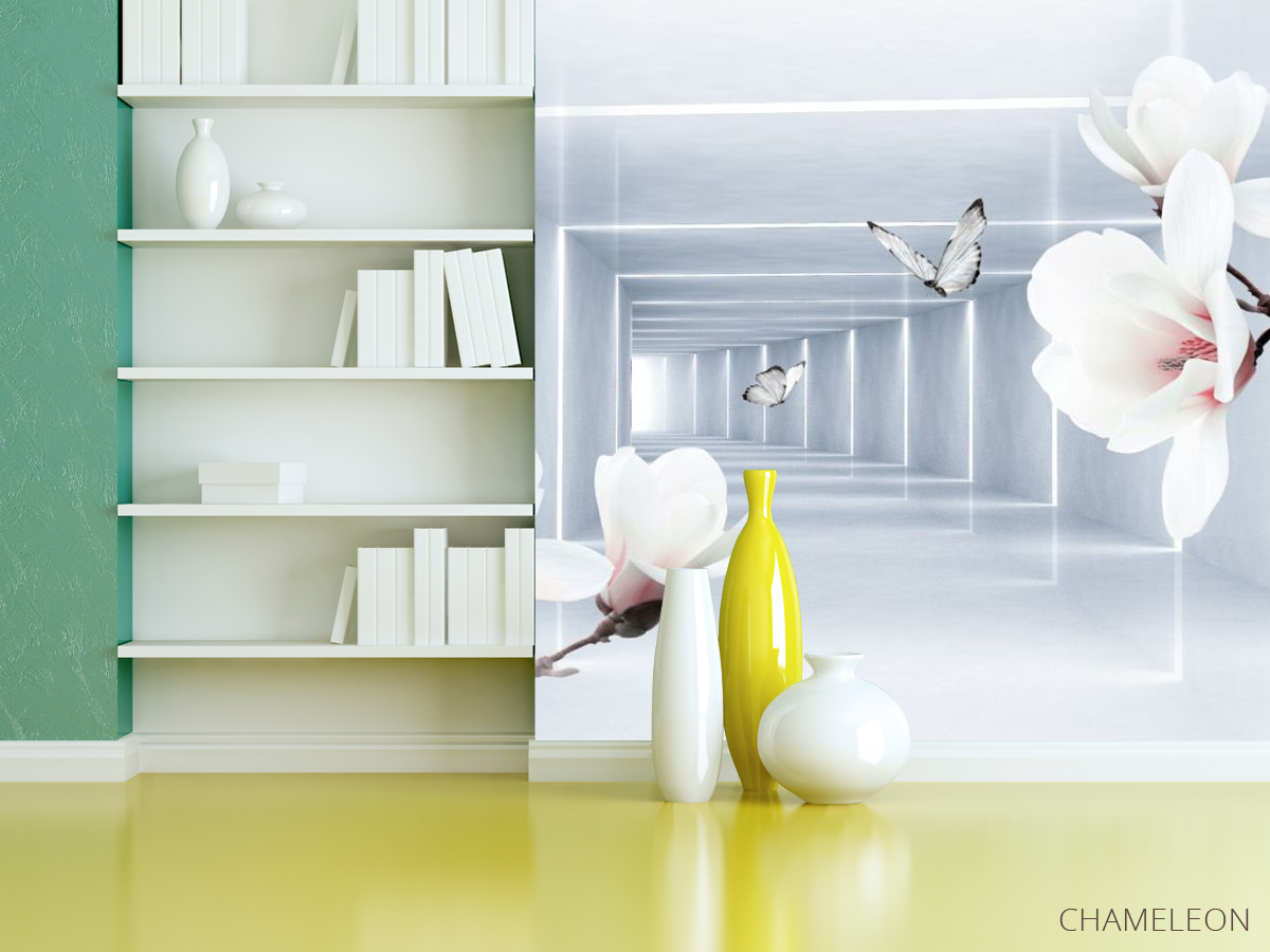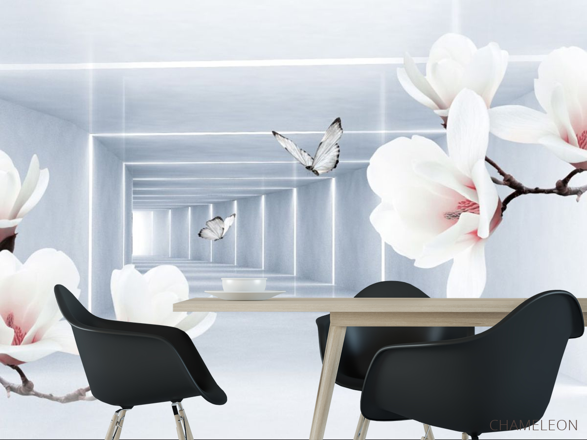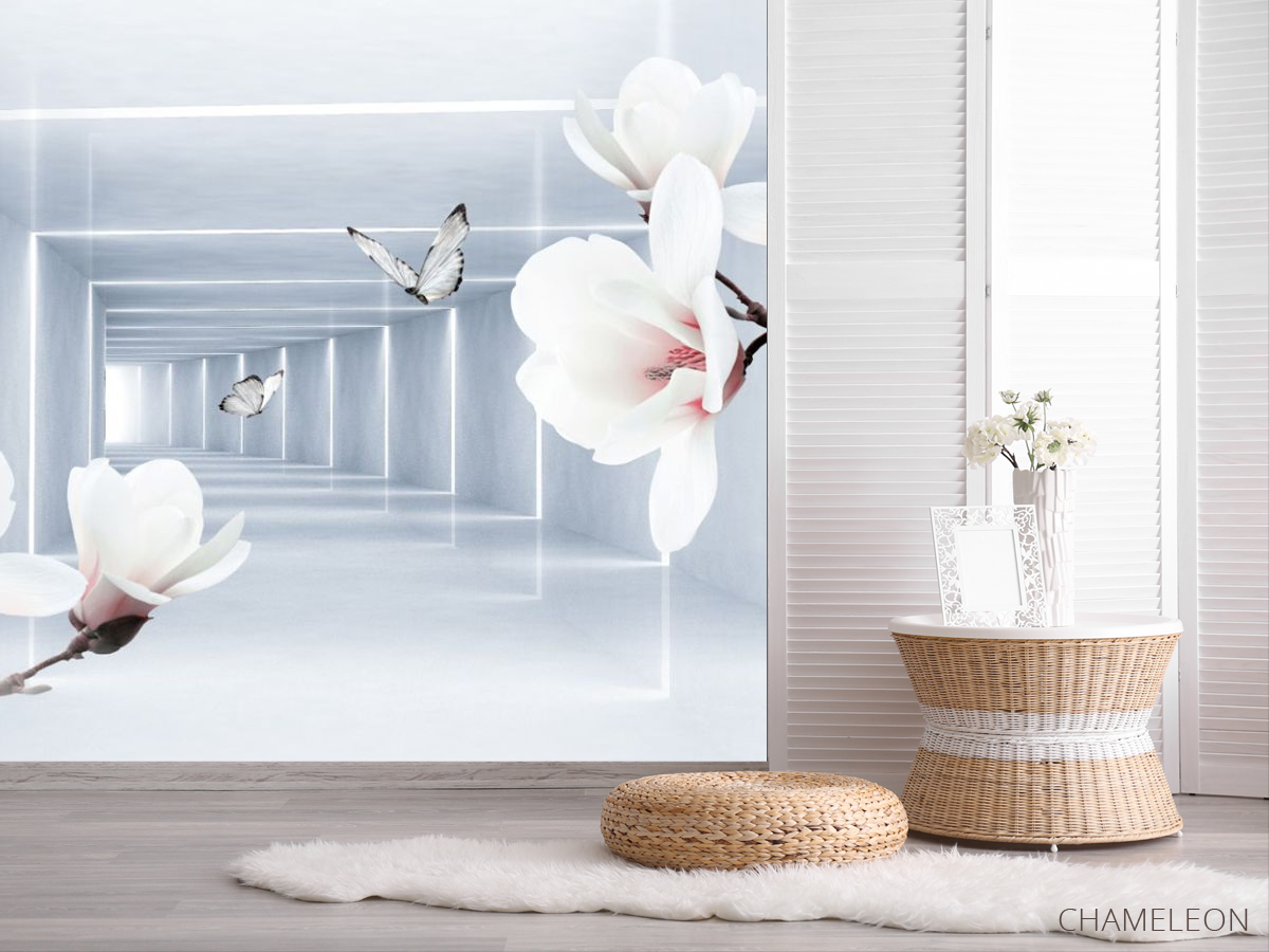 Фотошпалери квіти і 3Д тунель