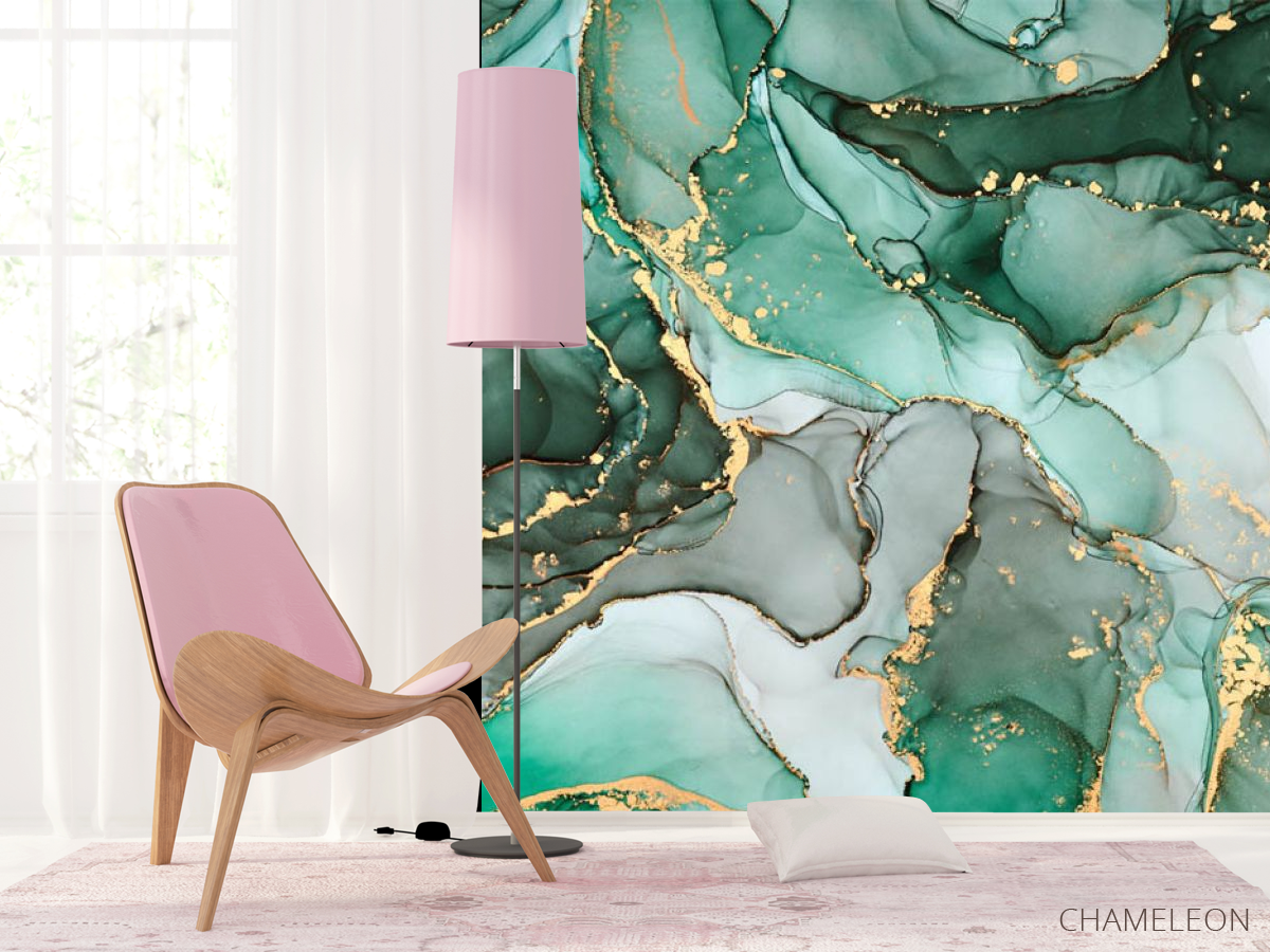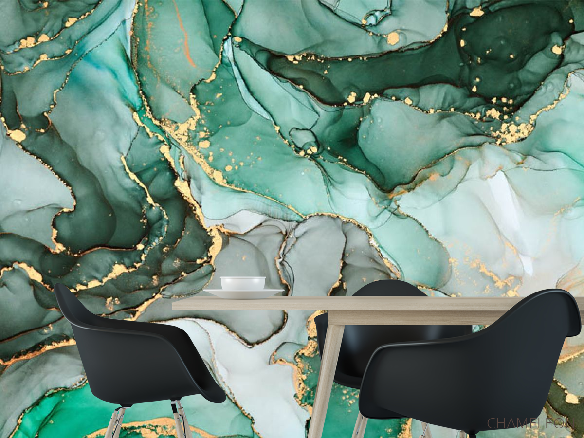 Фотошпалери Зелений Fluid art з золотом, (арт. 29341) - купити в інтернет-магазині Chameleon