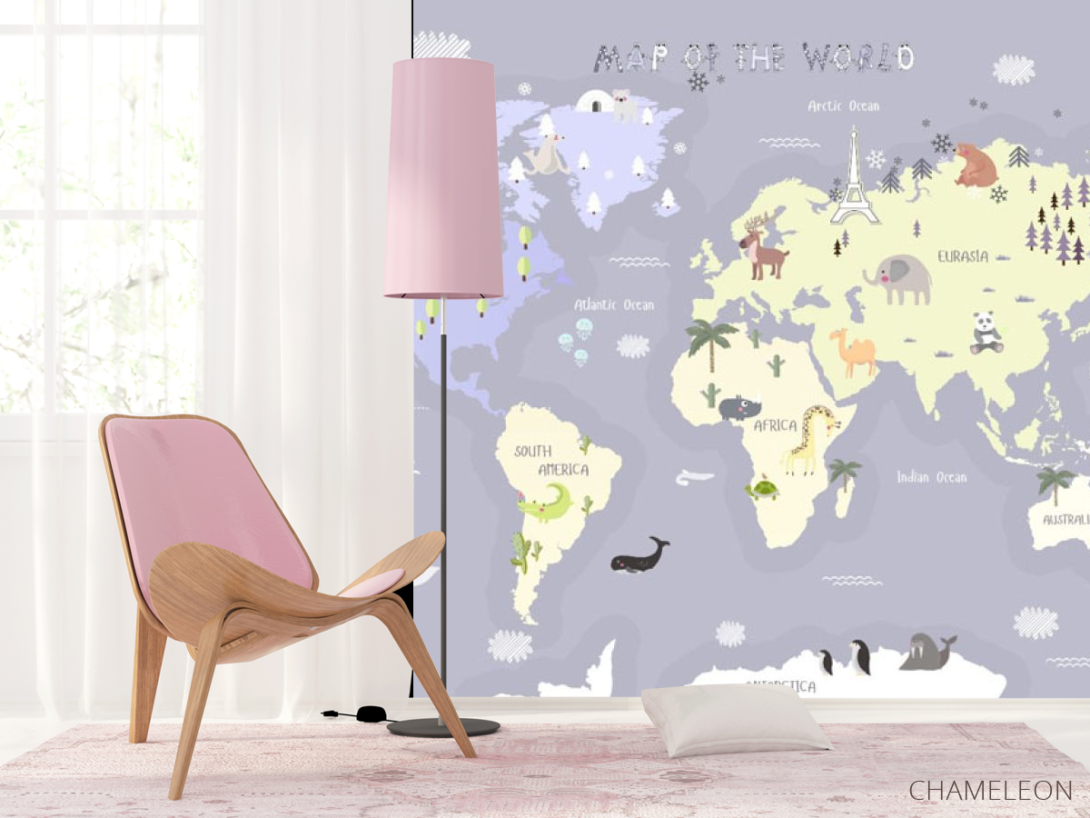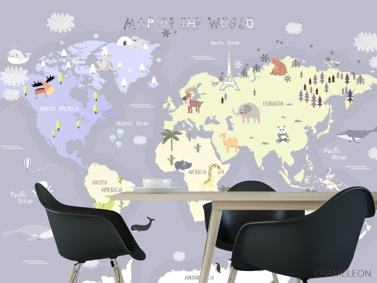 Фотошпалери фіолетова дитяча карта англійською 29654