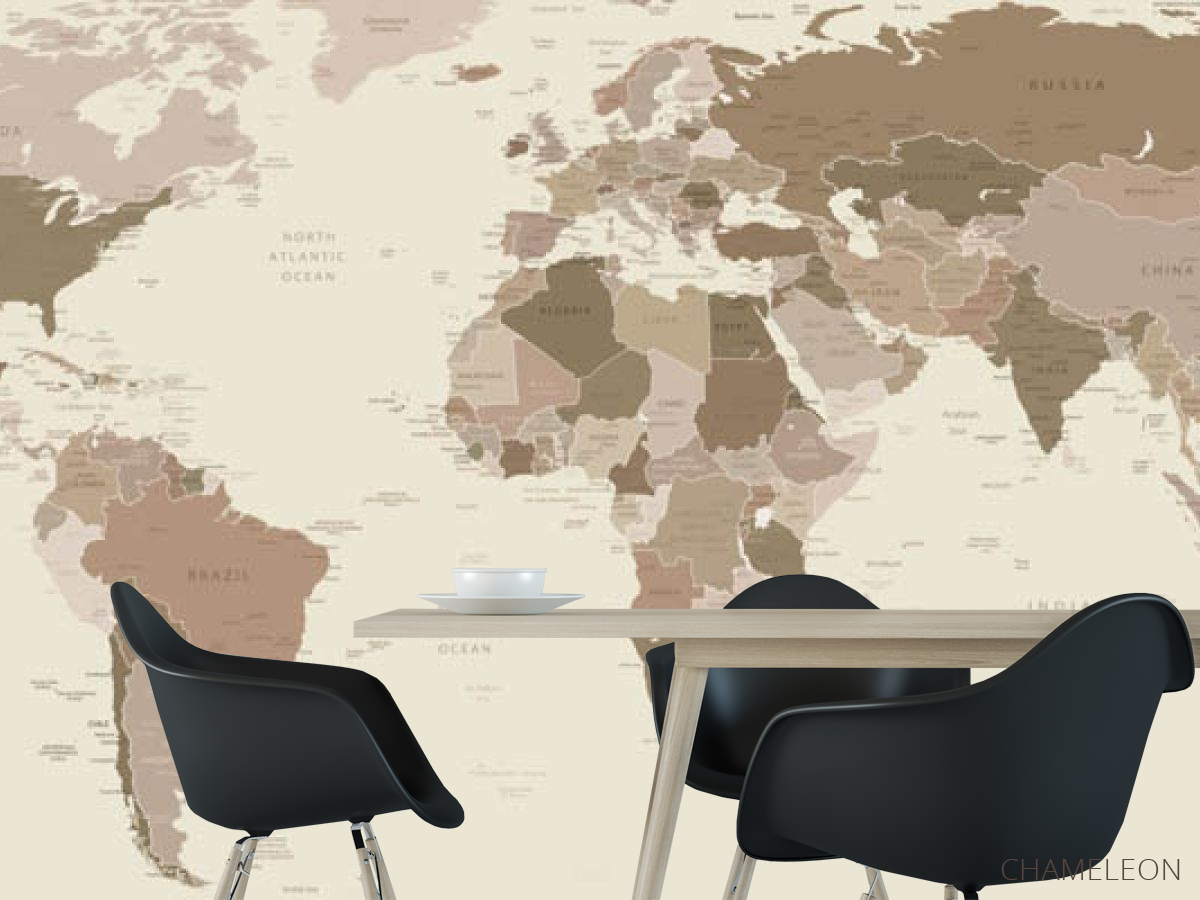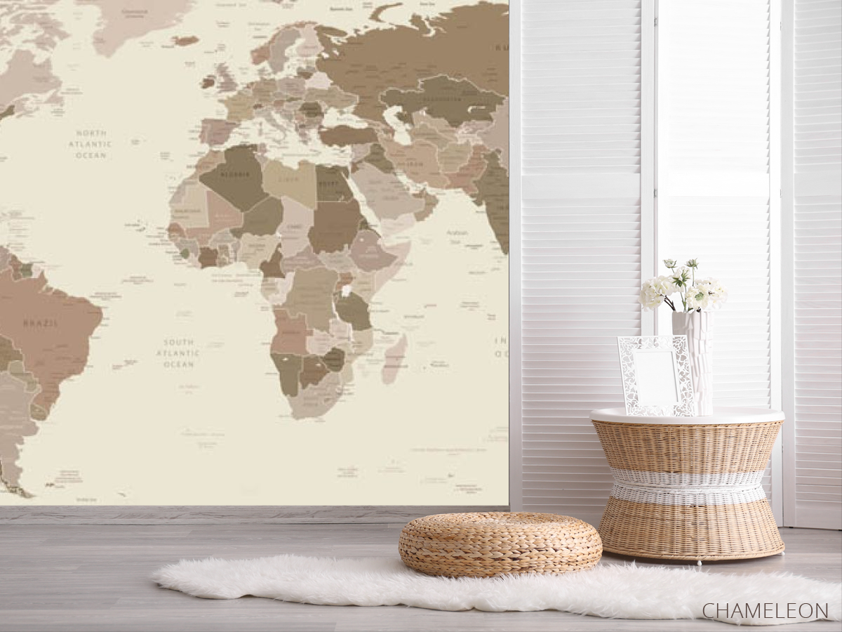 Фотошпалери карта світу є дуже хорошим вибором як для будинку (в вітальню, робочий кабінет або кухню), так і для інших будівель (в школу, ресторан або салон краси). Вони виглядають розкішно, мають стильний дизайн і відмінно підходять під будь-яке оформлення кімнати. Сучасні фотошпалери на стіну виробляються з надійного матеріалу, який не псується і не дряпається. Зображення - це повністю безпечна фарба, яка не викликає алергії, а також залишається красивим протягом багатьох років. Ви можете впевнено використовувати шпалери, які прикрасять будь-яке приміщення. Купити стильні і оригінальні фотошпалери з картою світу можна в інтернет-магазині Chameleons.