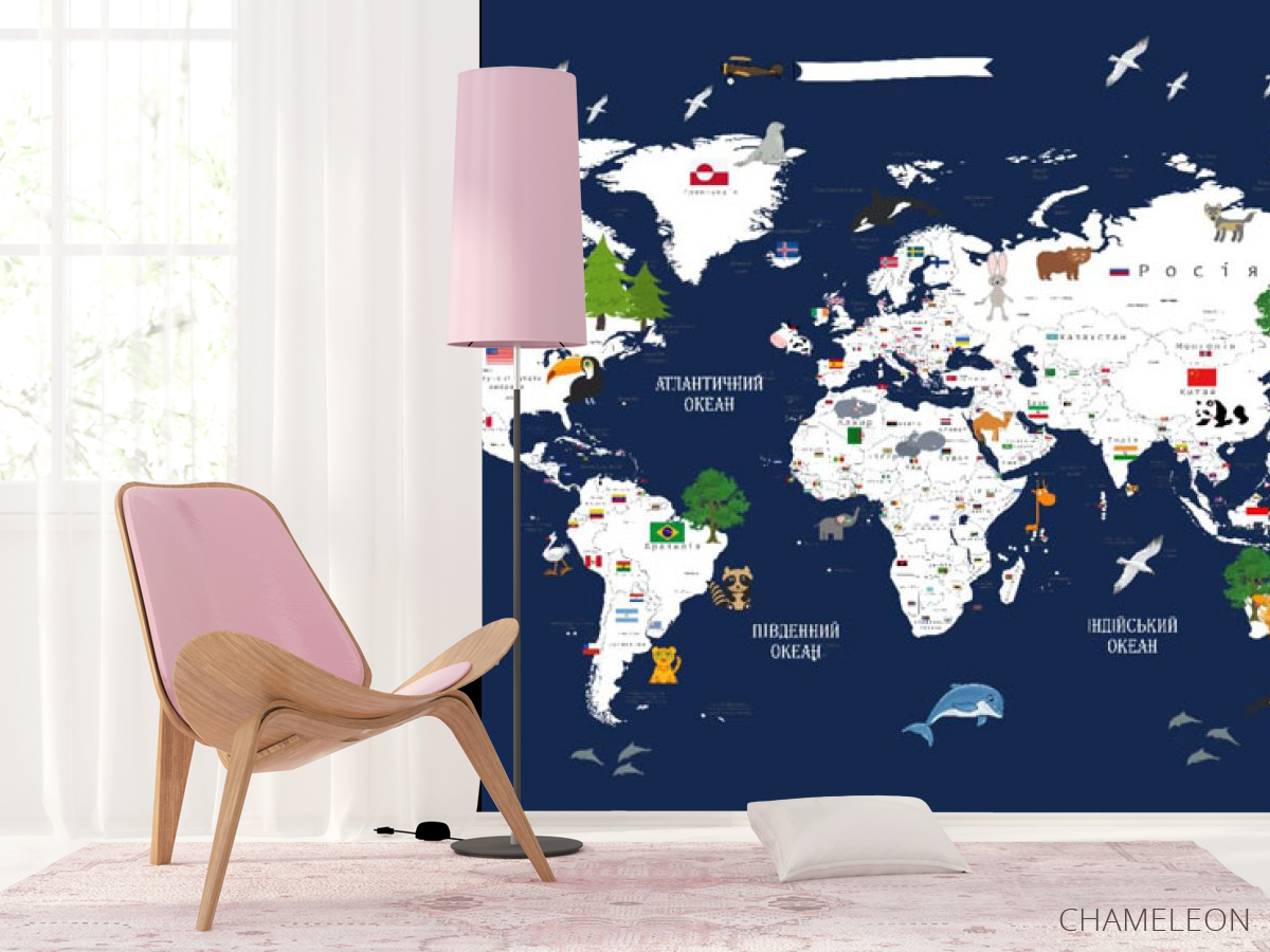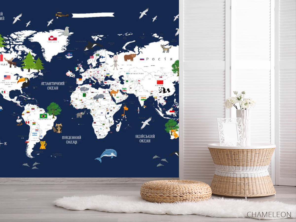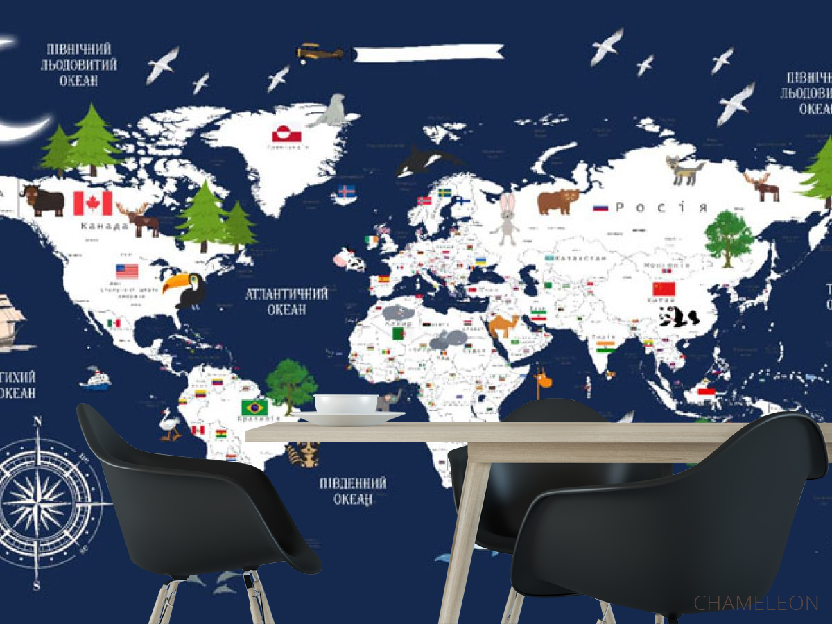 Фотошпалери синя карта дитяча українською мовою з компасом 29972_1