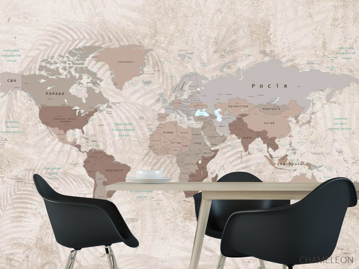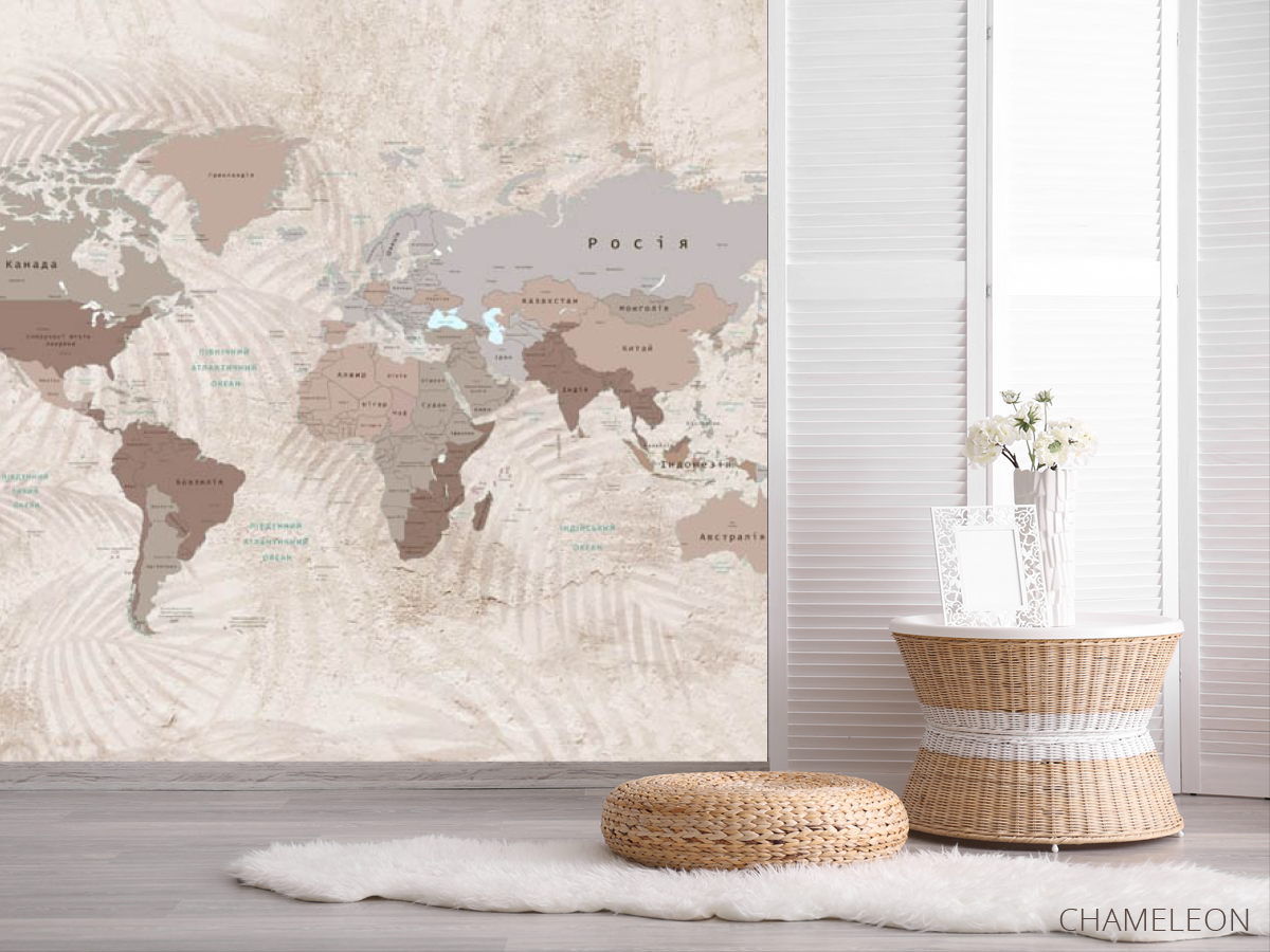 Фотошпалери карта світу є дуже хорошим вибором як для будинку (в вітальню, робочий кабінет або кухню), так і для інших будівель (в школу, ресторан або салон краси). Вони виглядають розкішно, мають стильний дизайн і відмінно підходять під будь-яке оформлення кімнати. Сучасні фотошпалери на стіну виробляються з надійного матеріалу, який не псується і не дряпається. Зображення - це повністю безпечна фарба, яка не викликає алергії, а також залишається красивим протягом багатьох років. Ви можете впевнено використовувати шпалери, які прикрасять будь-яке приміщення. Купити стильні і оригінальні фотошпалери з картою світу можна в інтернет-магазині Chameleons.