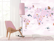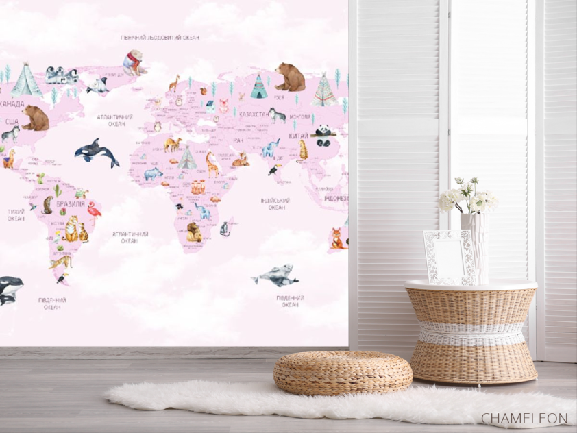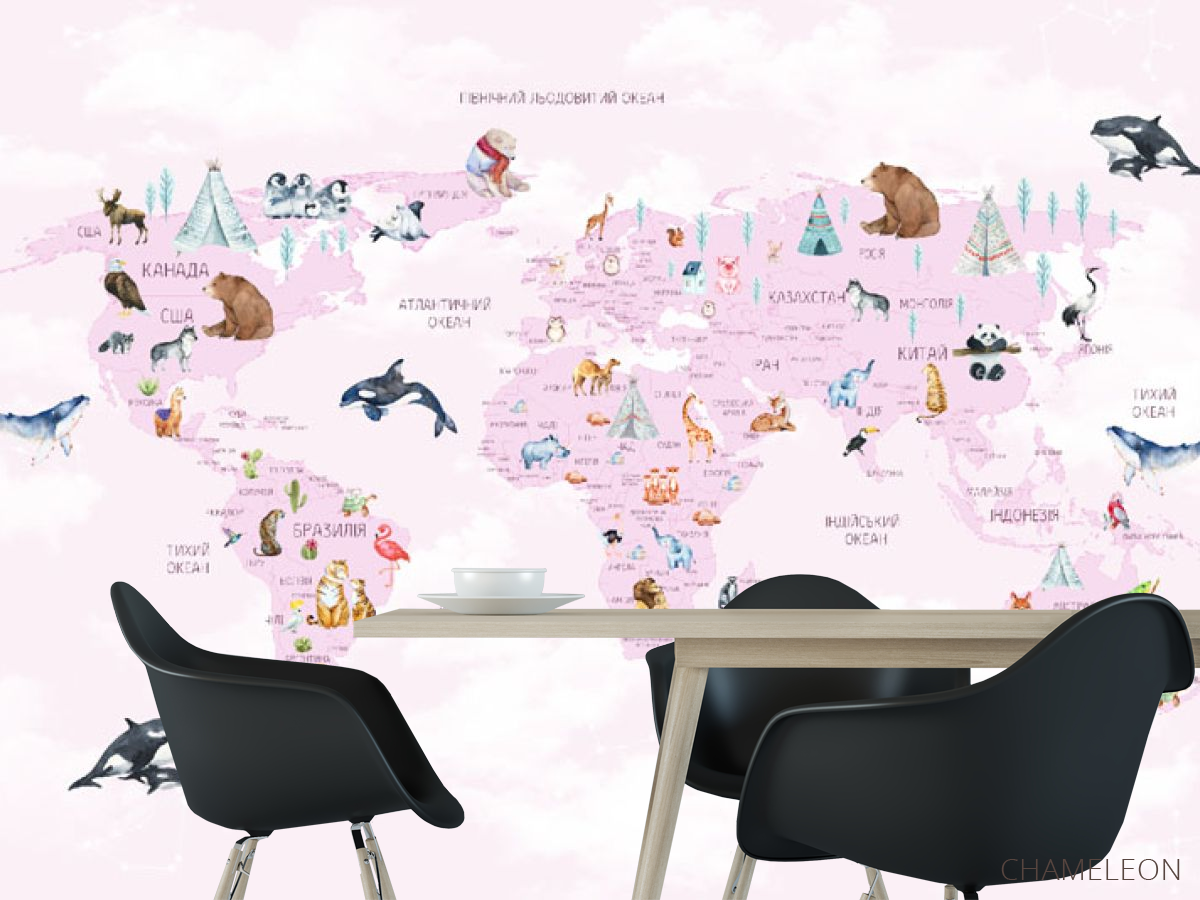 Фотошпалери карта дитяча з хмарками українською мовою в рожевому кольорі. 30289_2