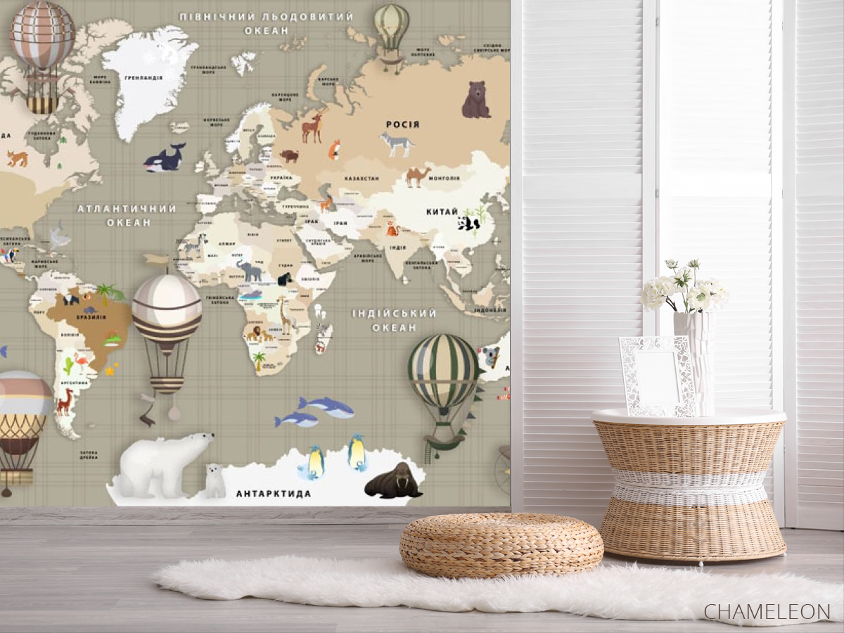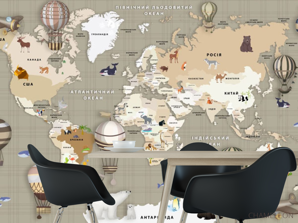 Фотошпалери коричнева карта з повітряними кулями українською 30290