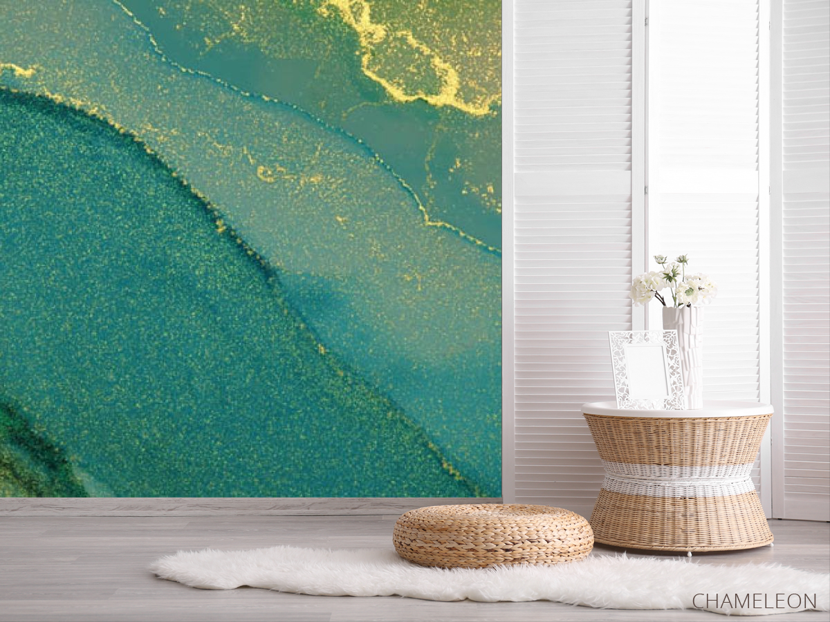 Фотошпалери Зелений fluid art з золотом, (арт. 30443) - купити в інтернет-магазині Chameleon