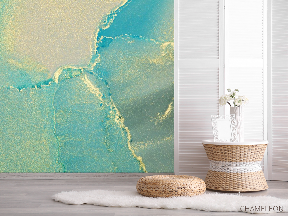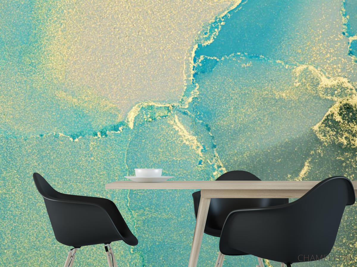 Фотошпалери Бірюзовий fluid art з золотом, (арт. 30446) - купити в інтернет-магазині Chameleon