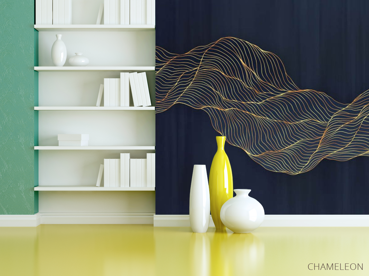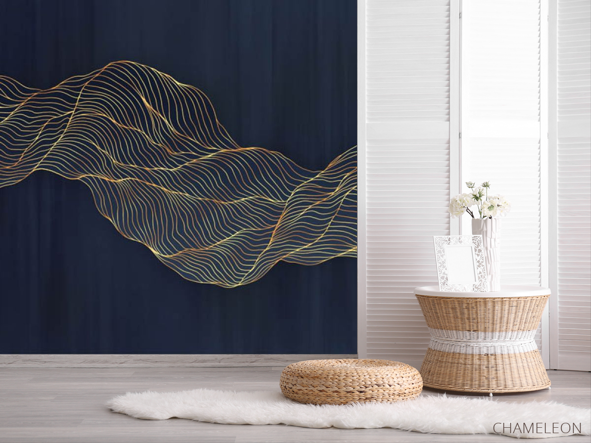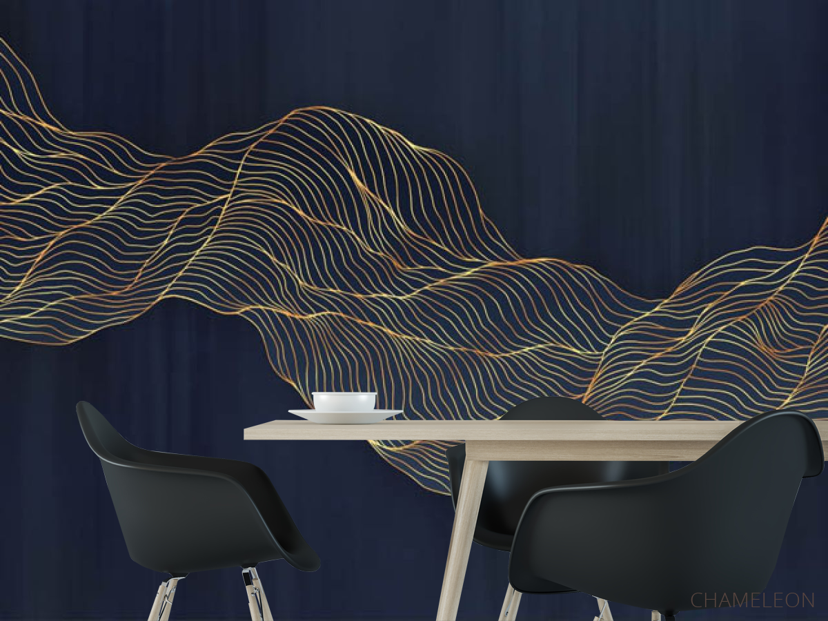 Фотошпалери абстрактні хвилі золоті на синьому тлі, (арт. 31002) - купити в інтернет-магазині Chameleon