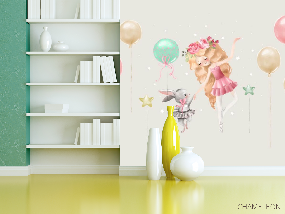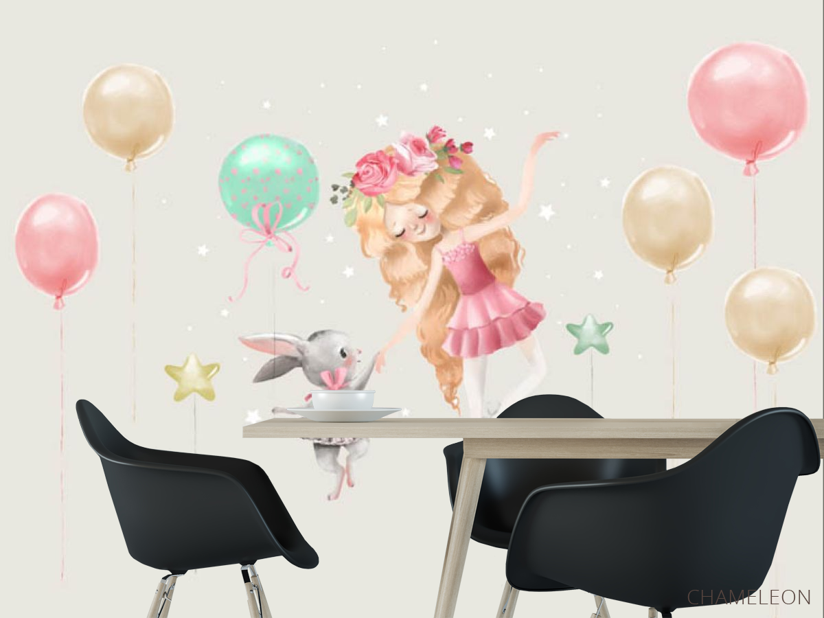 Фотошпалери дівчинка з зайчиком і кульками, (арт. 31037) - купити в інтернет-магазині Chameleon