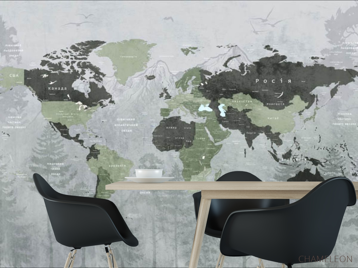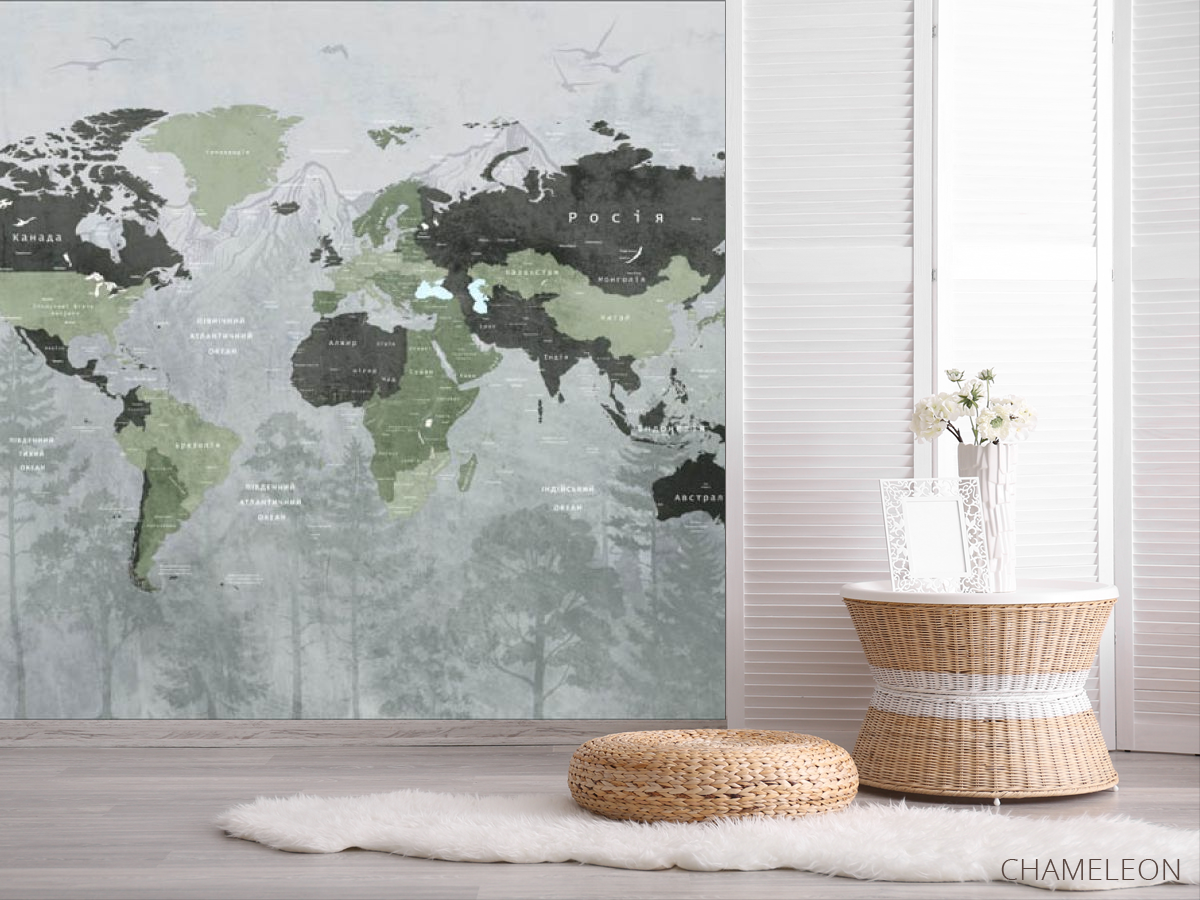 Фотошпалери карта світу є дуже хорошим вибором як для будинку (в вітальню, робочий кабінет або кухню), так і для інших будівель (в школу, ресторан або салон краси). Вони виглядають розкішно, мають стильний дизайн і відмінно підходять під будь-яке оформлення кімнати. Сучасні фотошпалери на стіну виробляються з надійного матеріалу, який не псується і не дряпається. Зображення - це повністю безпечна фарба, яка не викликає алергії, а також залишається красивим протягом багатьох років. Ви можете впевнено використовувати шпалери, які прикрасять будь-яке приміщення. Купити стильні і оригінальні фотошпалери з картою світу можна в інтернет-магазині Chameleons.