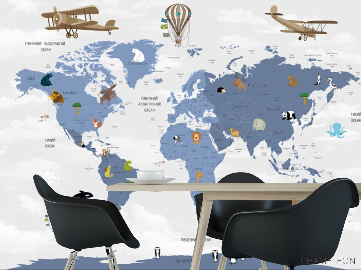 Фотошпалери Карта Дитяча на українському сині континенти 31499
