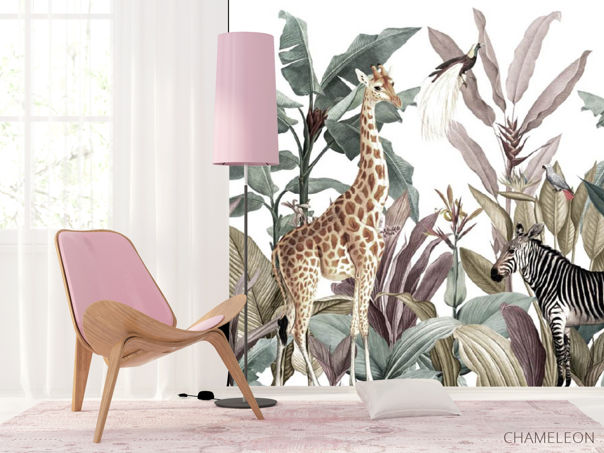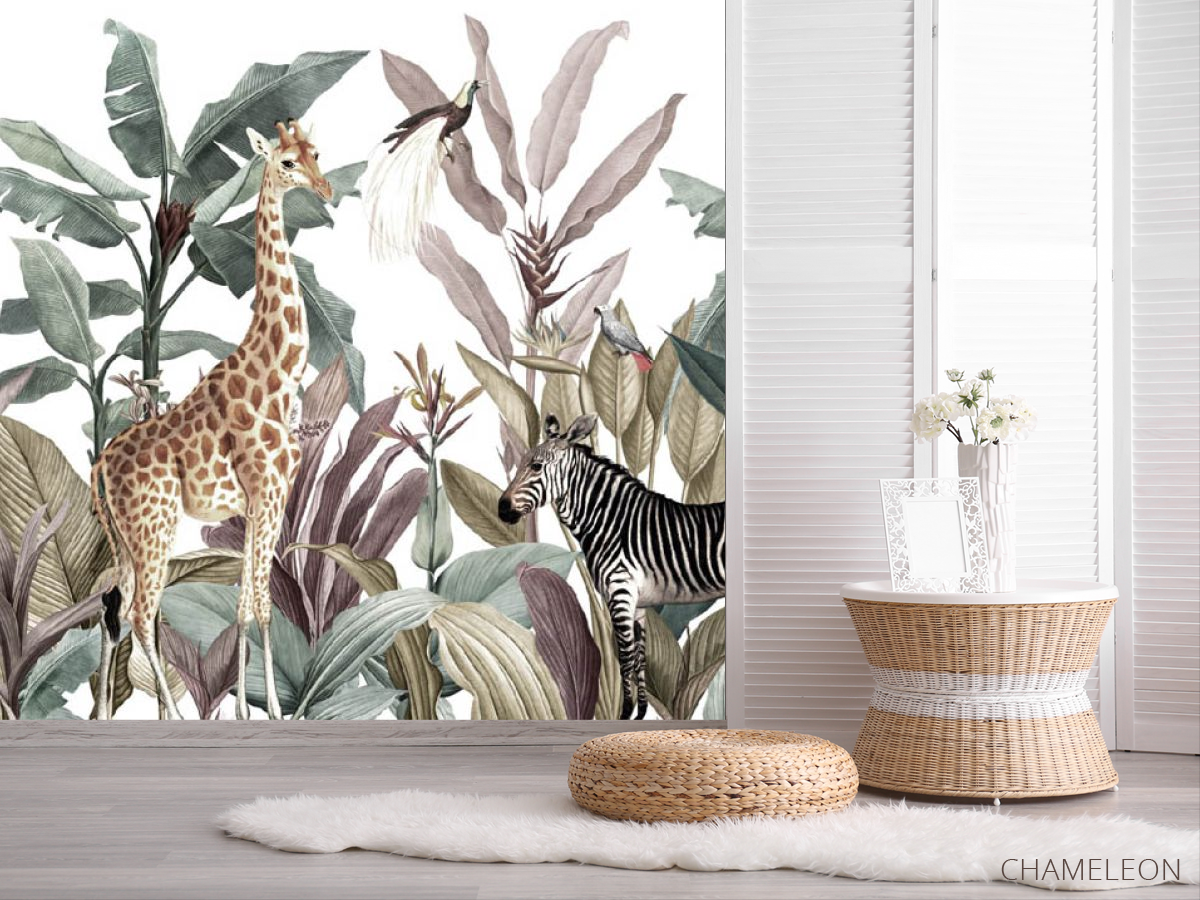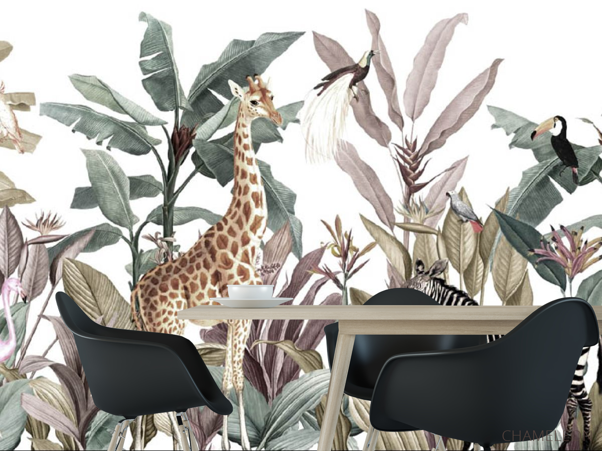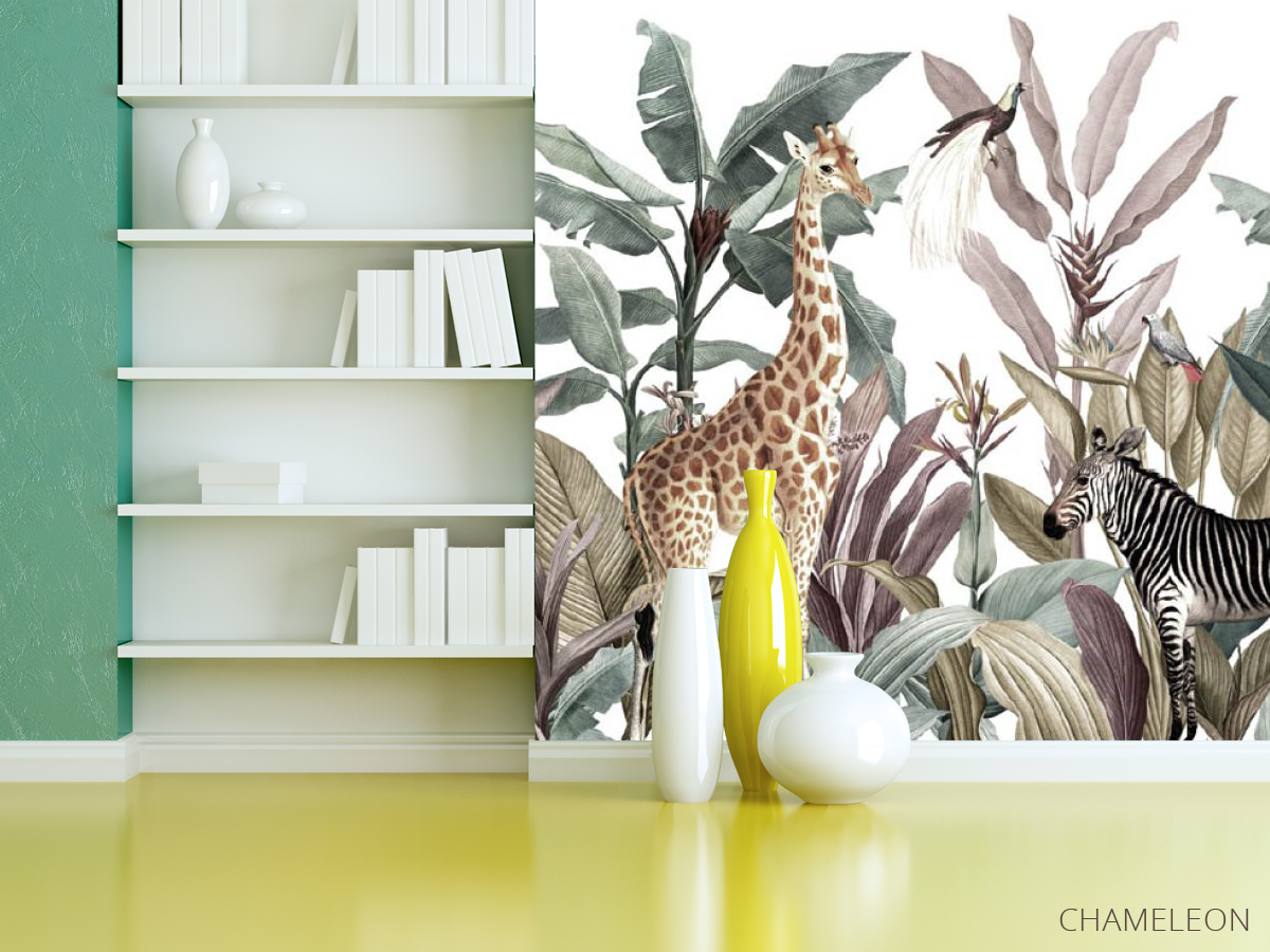 Фотошпалери тропічні листя і тварини, (арт. 31563) - купити в інтернет-магазині Chameleon