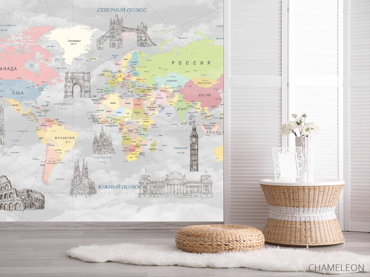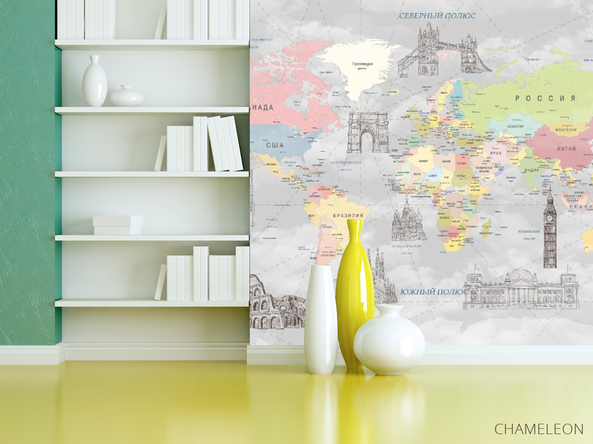 Фотошпалери карта світу є дуже хорошим вибором як для будинку (в вітальню, робочий кабінет або кухню), так і для інших будівель (в школу, ресторан або салон краси). Вони виглядають розкішно, мають стильний дизайн і відмінно підходять під будь-яке оформлення кімнати. Сучасні фотошпалери на стіну виробляються з надійного матеріалу, який не псується і не дряпається. Зображення - це повністю безпечна фарба, яка не викликає алергії, а також залишається красивим протягом багатьох років. Ви можете впевнено використовувати шпалери, які прикрасять будь-яке приміщення. Купити стильні і оригінальні фотошпалери з картою світу можна в інтернет-магазині Chameleons.