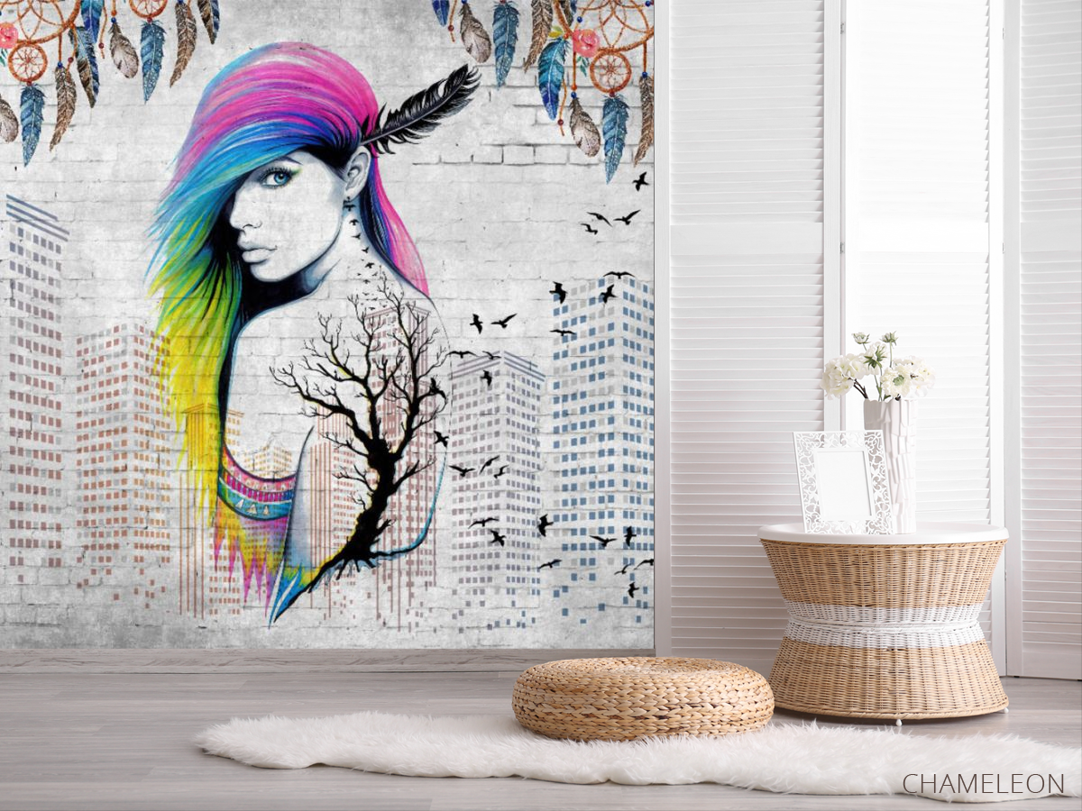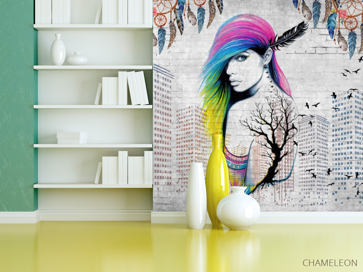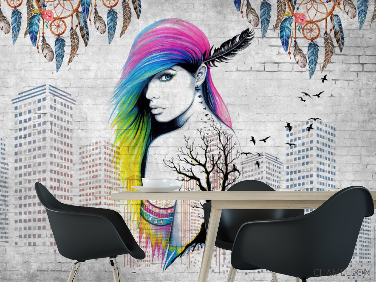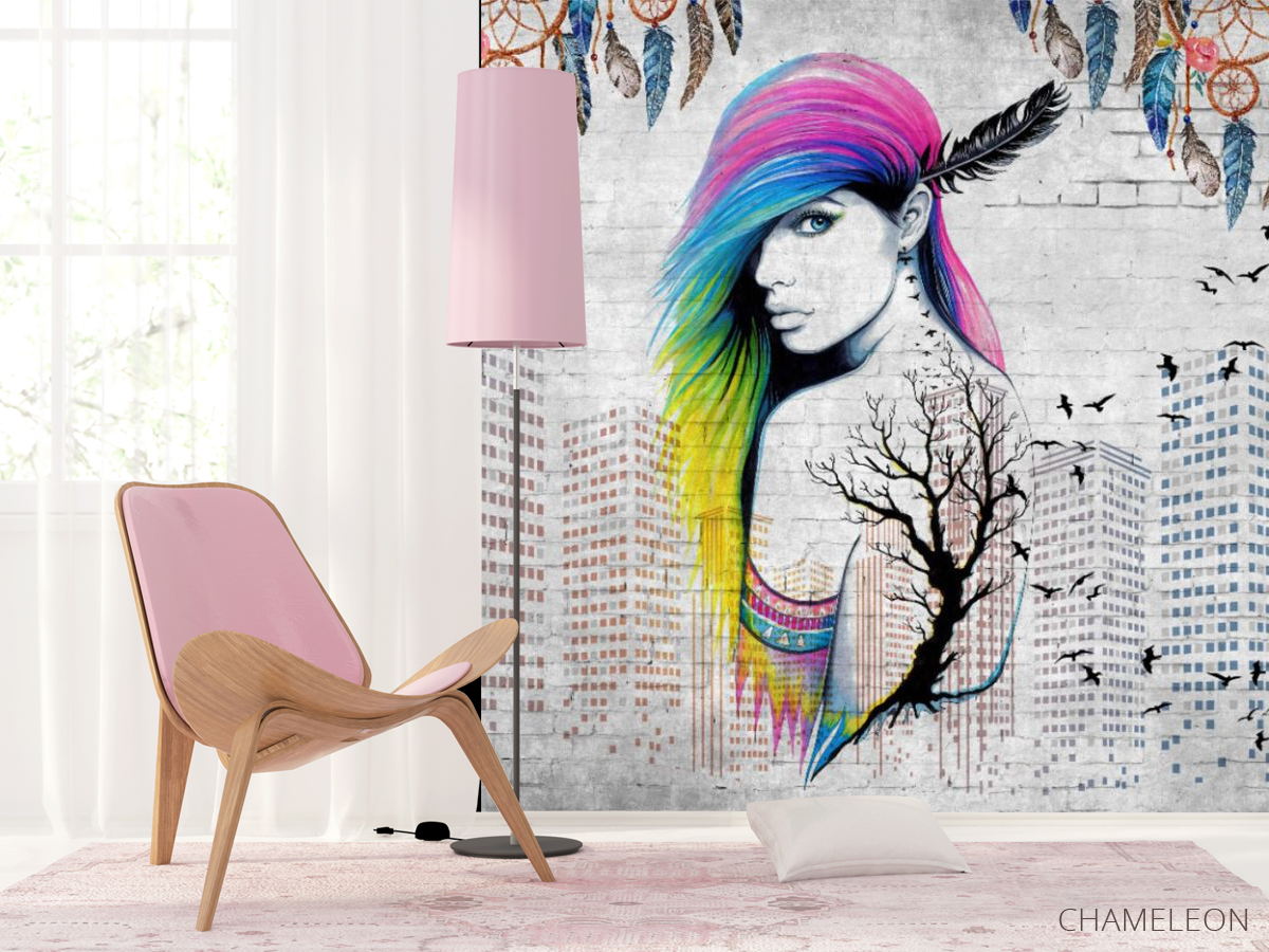 Фотошпалери кольорові волосся і висотки, (арт. 31777) - купити в інтернет-магазині Chameleon