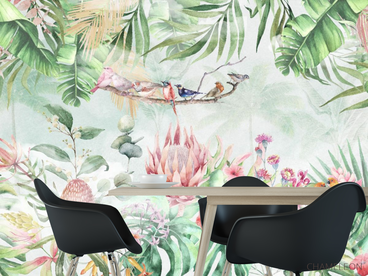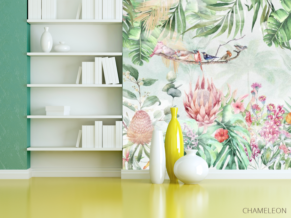 Сучасний інтер'єр в більшості випадків виконаний з пастельних відтінків і часом хочеться внести в них трохи яскравості. Фотошпалери тропічні листя стануть відмінним рішенням для тих, хто бажає розбавити стиль кімнати і надати йому природної бадьорості, барвистості і створити атмосферу жарких країн. Такі шпалери чудово впишуться в обстановку спальні, кухні або вітальні. Фотошпалери Тропічні листя додадуть в будинок комфорту і затишку, а також будуть радувати око протягом багатьох років. Шпалери виготовлені з матеріалів високої якості, не викликають алергію і не вигоряють на сонці. Ви можете вибрати паперову або флізелінову основу, але незалежно від цього, клеїти їх абсолютно легко: достатньо лише нанести клей на стіну і прикріпити полотно.