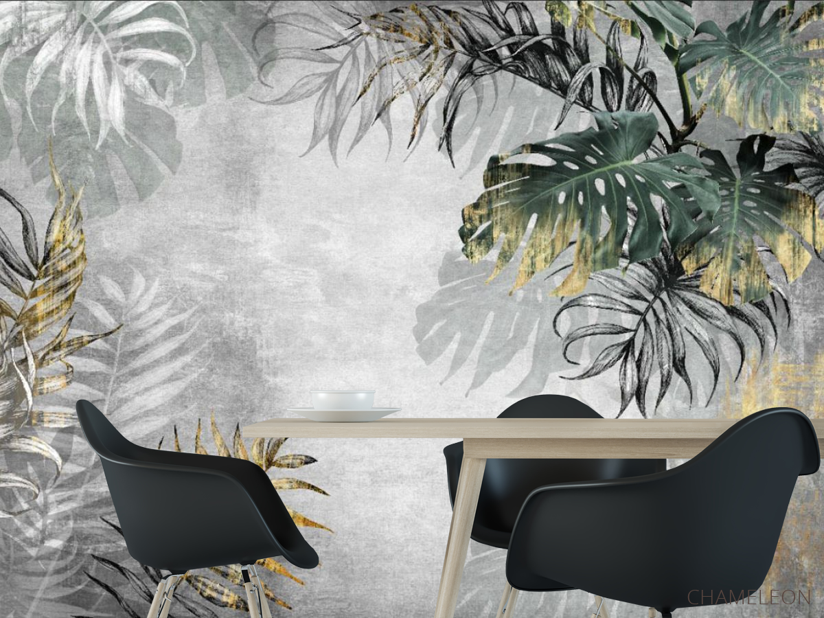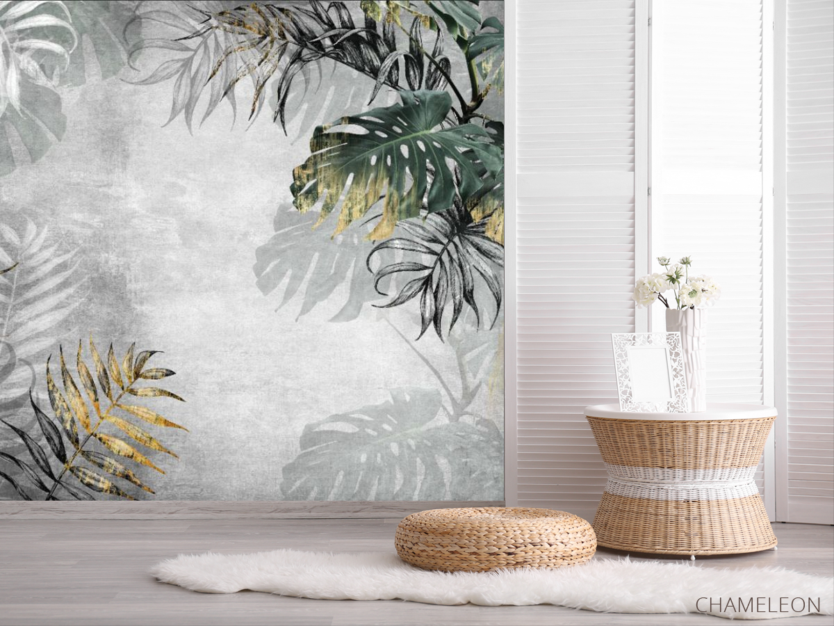 Фотошпалери тропічні листя з золотом, (арт. 31813g) - купити в інтернет-магазині Chameleon