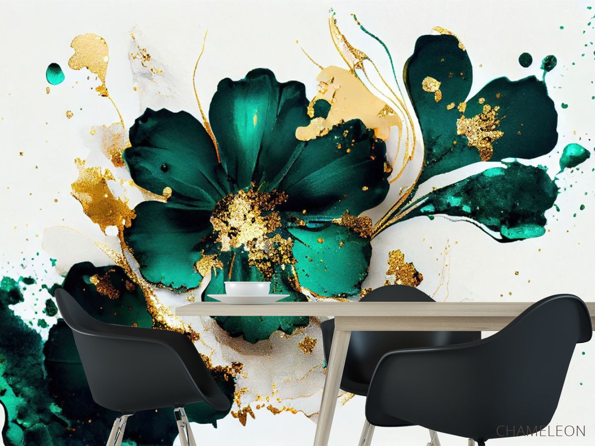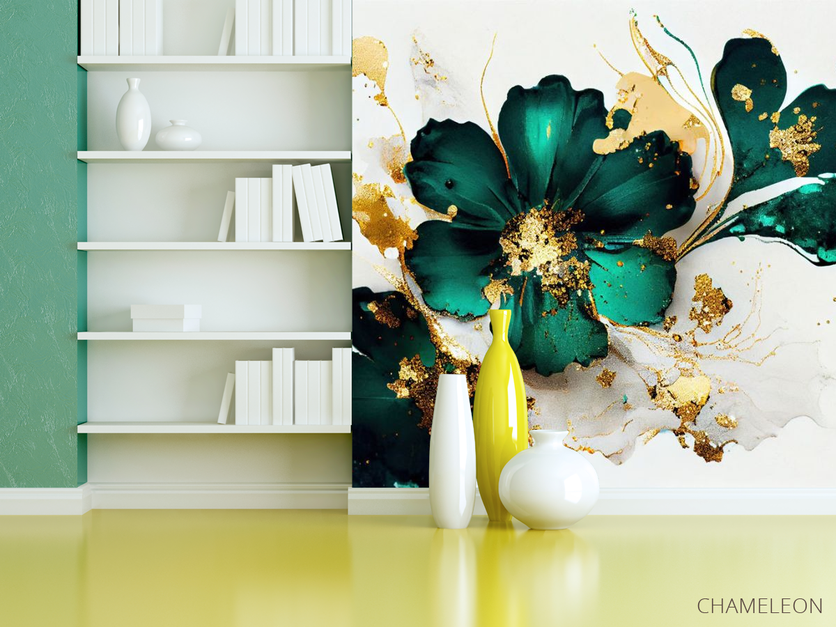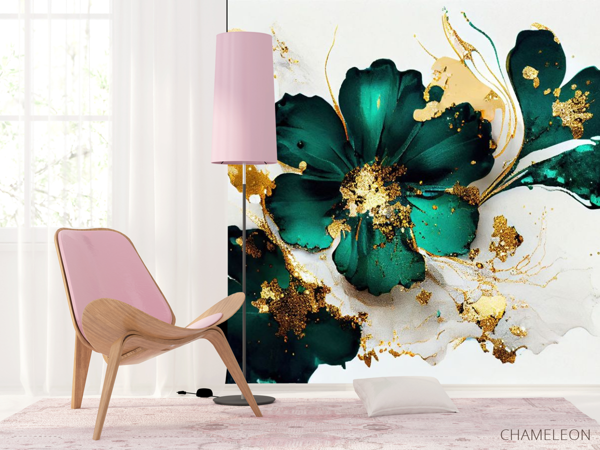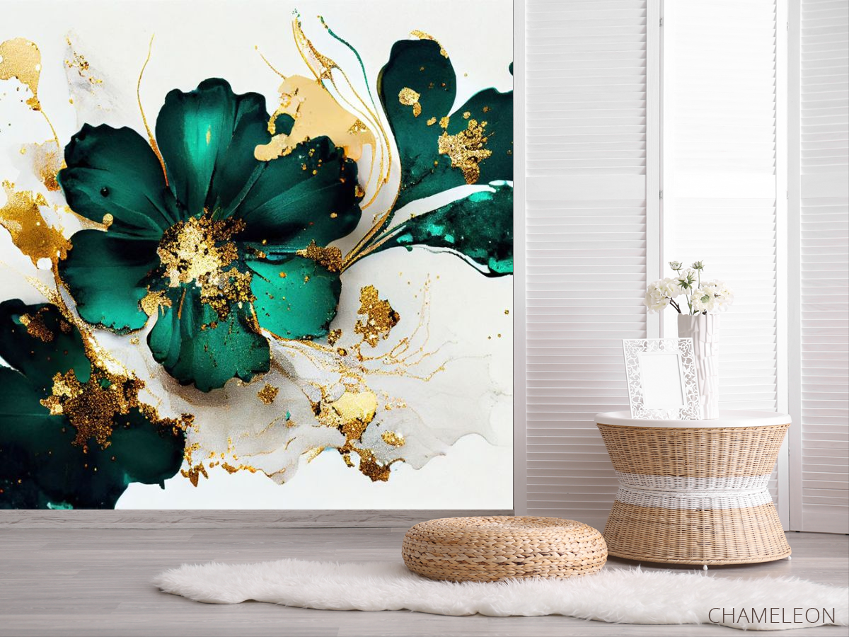Фотошпалери зелені квіти з золотом, (арт. 31867g) - купити в інтернет-магазині Chameleon