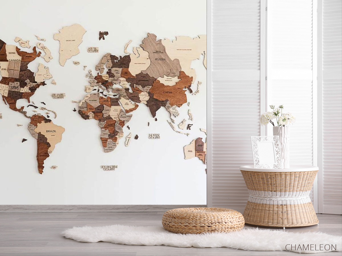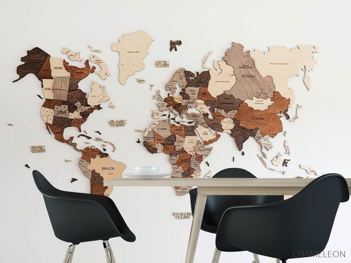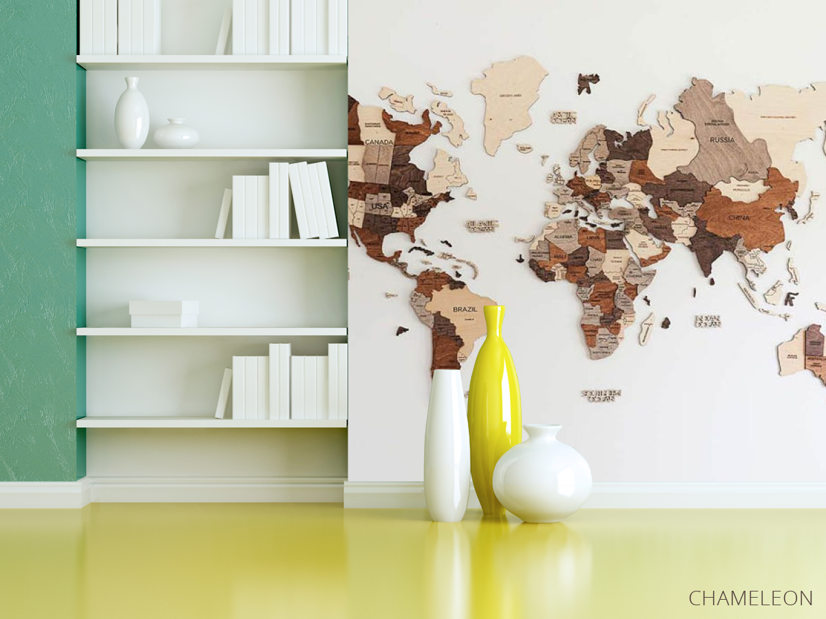 Фотошпалери карта світу є дуже хорошим вибором як для будинку (в вітальню, робочий кабінет або кухню), так і для інших будівель (в школу, ресторан або салон краси). Вони виглядають розкішно, мають стильний дизайн і відмінно підходять під будь-яке оформлення кімнати. Сучасні фотошпалери на стіну виробляються з надійного матеріалу, який не псується і не дряпається. Зображення - це повністю безпечна фарба, яка не викликає алергії, а також залишається красивим протягом багатьох років. Ви можете впевнено використовувати шпалери, які прикрасять будь-яке приміщення. Купити стильні і оригінальні фотошпалери з картою світу можна в інтернет-магазині Chameleons.