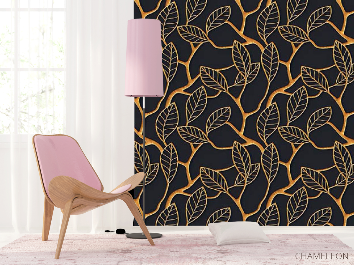 Фотошпалери золоті листя 3д, (арт. 32512) - купити в інтернет-магазині Chameleon