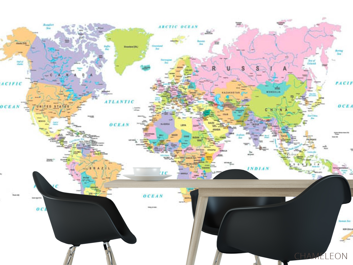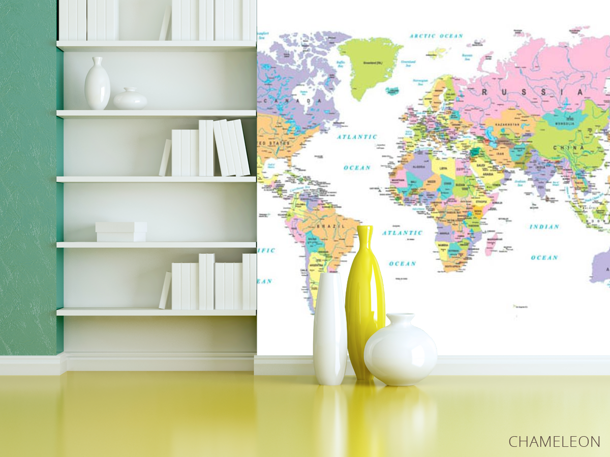Фотошпалери карта світу є дуже хорошим вибором як для будинку (в вітальню, робочий кабінет або кухню), так і для інших будівель (в школу, ресторан або салон краси). Вони виглядають розкішно, мають стильний дизайн і відмінно підходять під будь-яке оформлення кімнати. Сучасні фотошпалери на стіну виробляються з надійного матеріалу, який не псується і не дряпається. Зображення - це повністю безпечна фарба, яка не викликає алергії, а також залишається красивим протягом багатьох років. Ви можете впевнено використовувати шпалери, які прикрасять будь-яке приміщення. Купити стильні і оригінальні фотошпалери з картою світу можна в інтернет-магазині Chameleons.