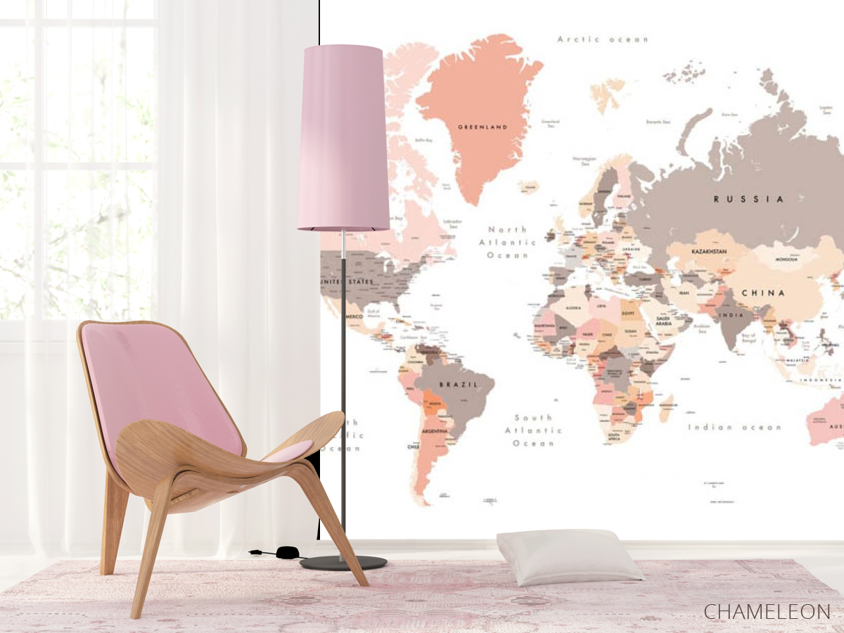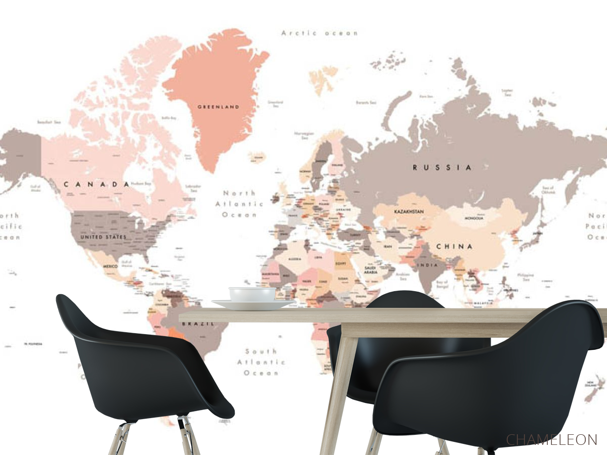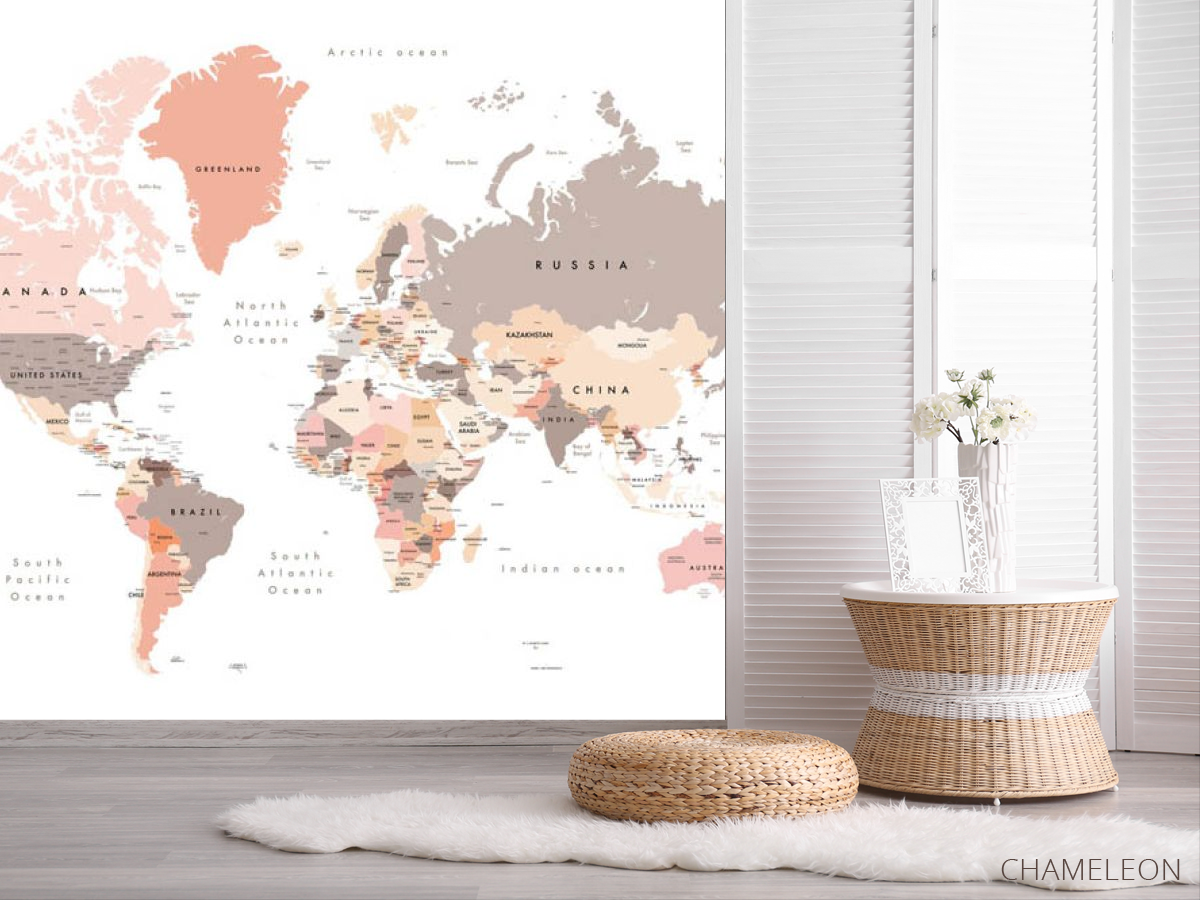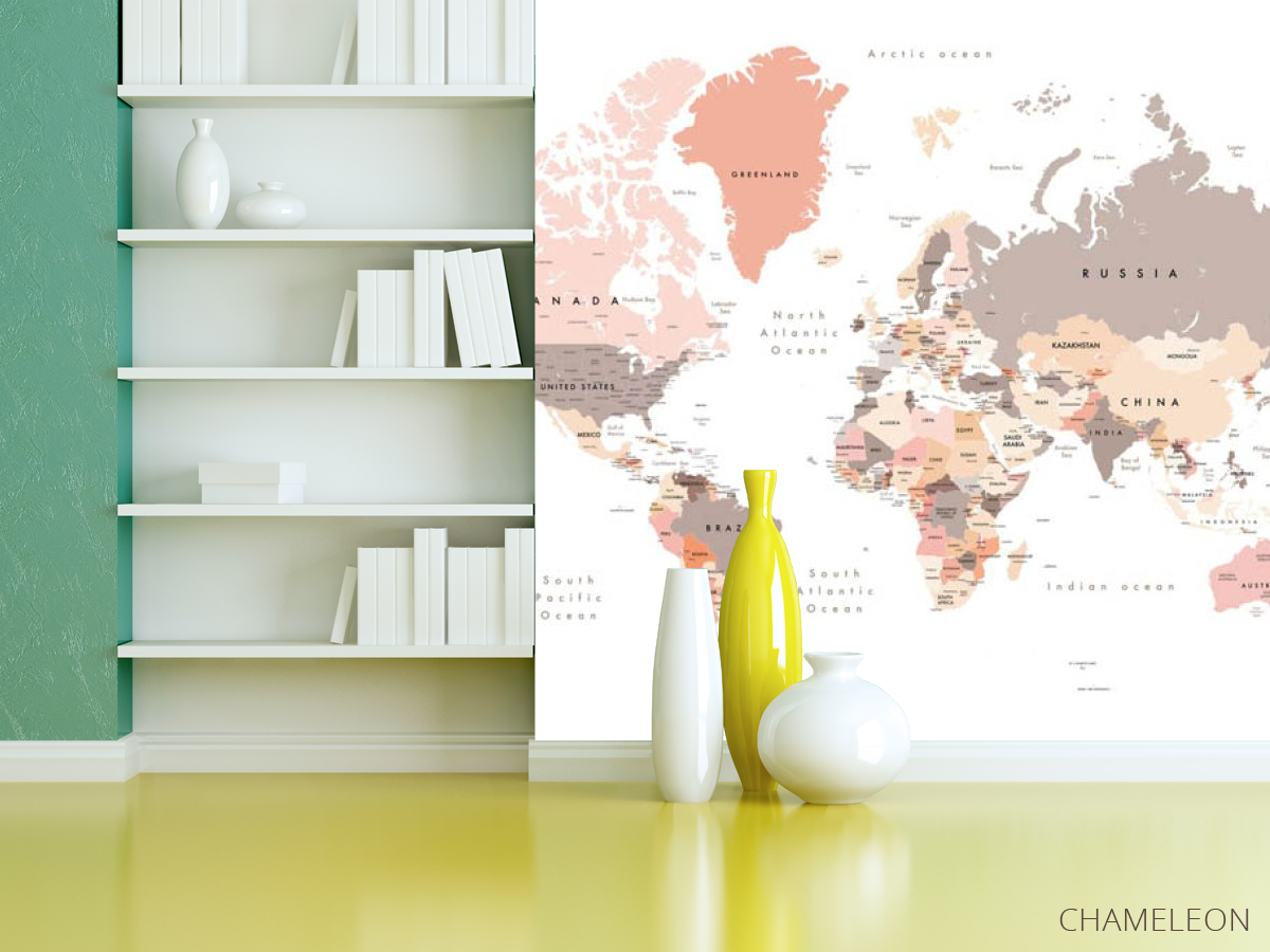 Фотошпалери карта світу є дуже хорошим вибором як для будинку (в вітальню, робочий кабінет або кухню), так і для інших будівель (в школу, ресторан або салон краси). Вони виглядають розкішно, мають стильний дизайн і відмінно підходять під будь-яке оформлення кімнати. Сучасні фотошпалери на стіну виробляються з надійного матеріалу, який не псується і не дряпається. Зображення - це повністю безпечна фарба, яка не викликає алергії, а також залишається красивим протягом багатьох років. Ви можете впевнено використовувати шпалери, які прикрасять будь-яке приміщення. Купити стильні і оригінальні фотошпалери з картою світу можна в інтернет-магазині Chameleons.