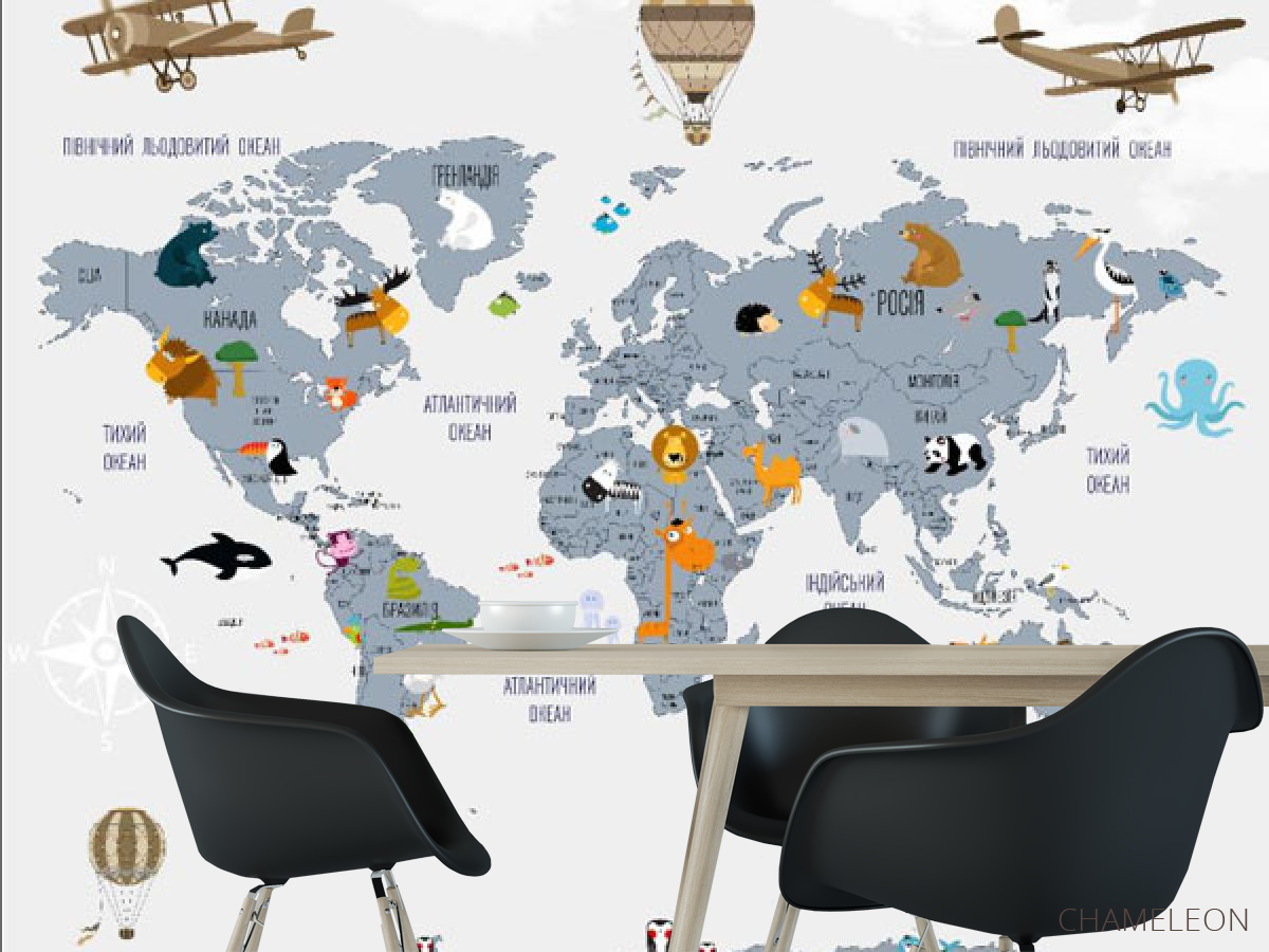 Фотошпалери Карта світу дитяча українською 33278