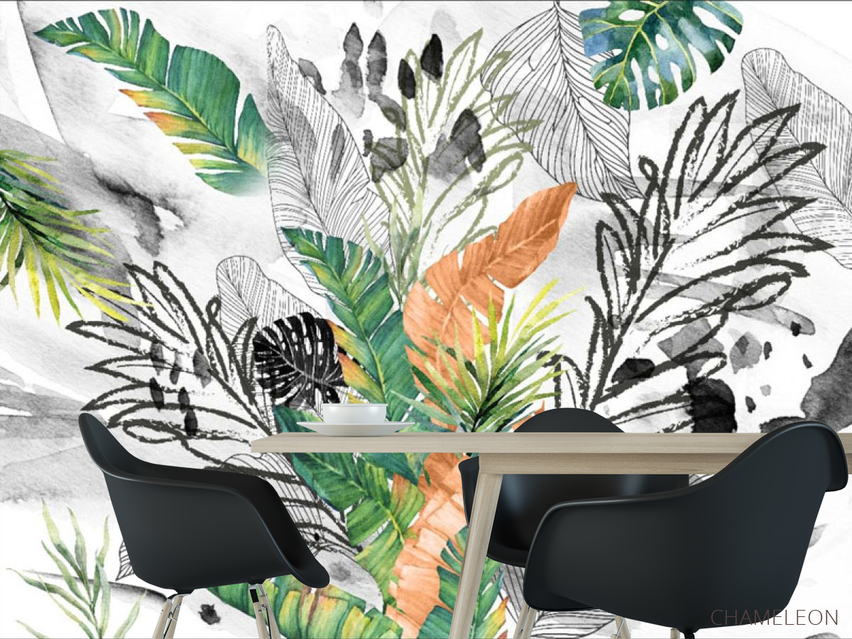 Сучасний інтер'єр в більшості випадків виконаний з пастельних відтінків і часом хочеться внести в них трохи яскравості. Фотошпалери тропічні листя стануть відмінним рішенням для тих, хто бажає розбавити стиль кімнати і надати йому природної бадьорості, барвистості і створити атмосферу жарких країн. Такі шпалери чудово впишуться в обстановку спальні, кухні або вітальні. Фотошпалери Тропічні листя додадуть в будинок комфорту і затишку, а також будуть радувати око протягом багатьох років. Шпалери виготовлені з матеріалів високої якості, не викликають алергію і не вигоряють на сонці. Ви можете вибрати паперову або флізелінову основу, але незалежно від цього, клеїти їх абсолютно легко: достатньо лише нанести клей на стіну і прикріпити полотно.