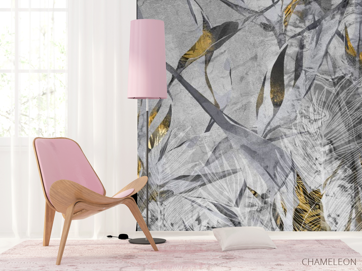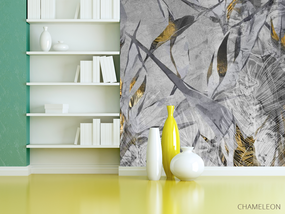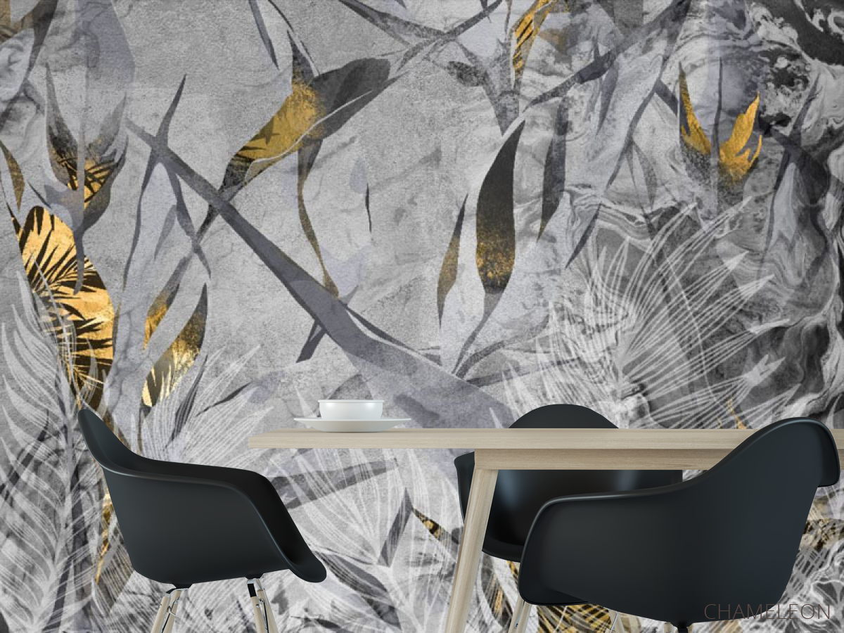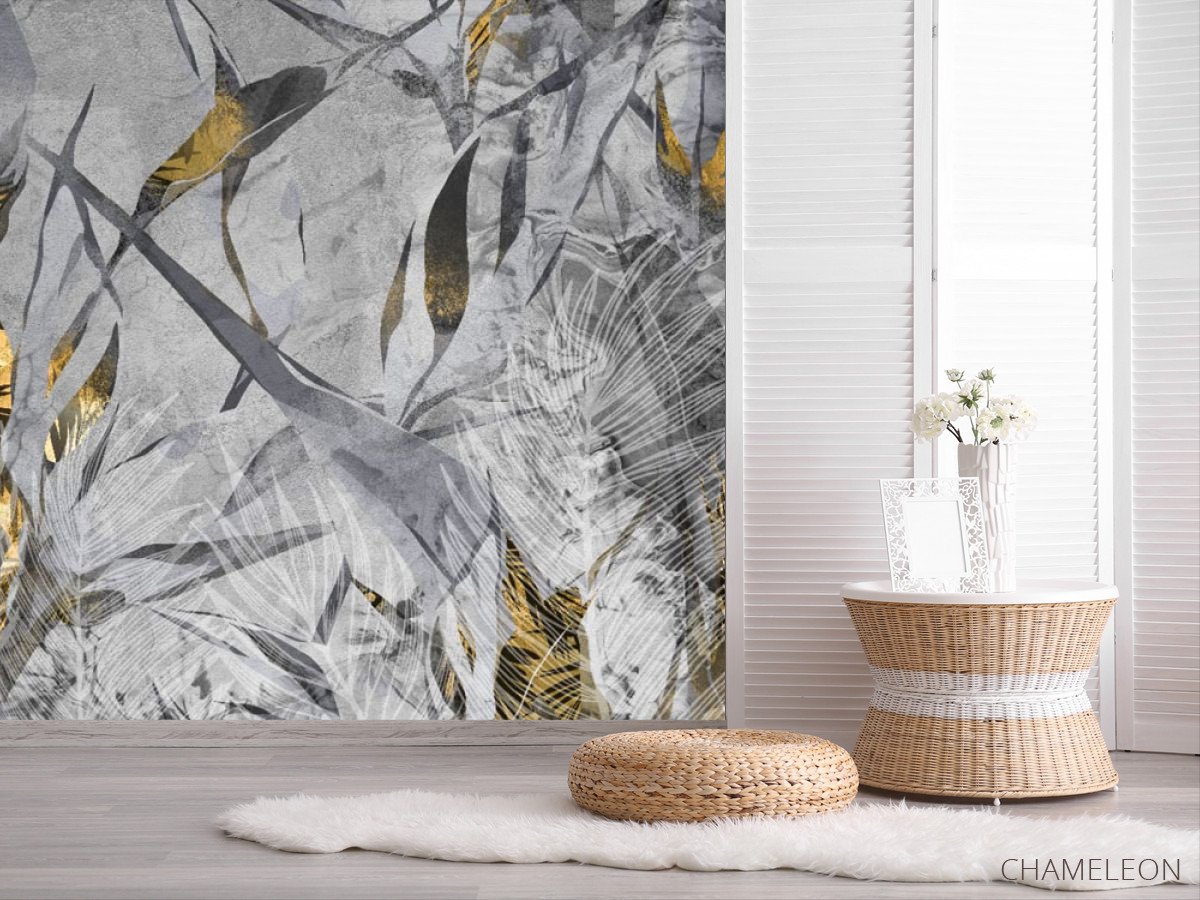 Фотошпалери сірі тропічні листя з золотом., (арт. 33326) - купити в інтернет-магазині Chameleon