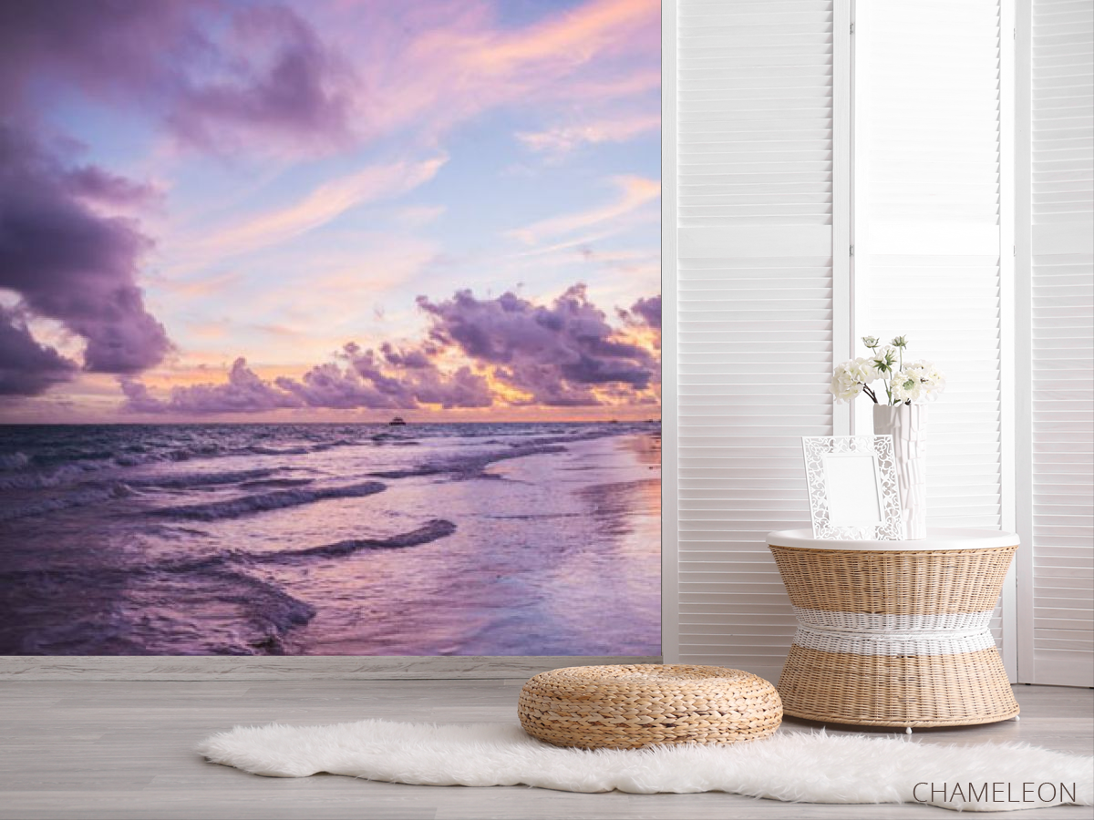 Фотошпалери Фіолетовий захід сонця біля моря