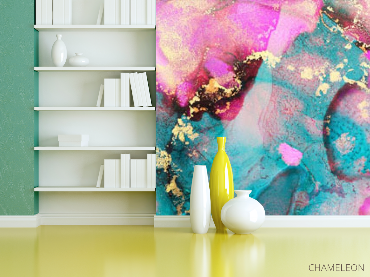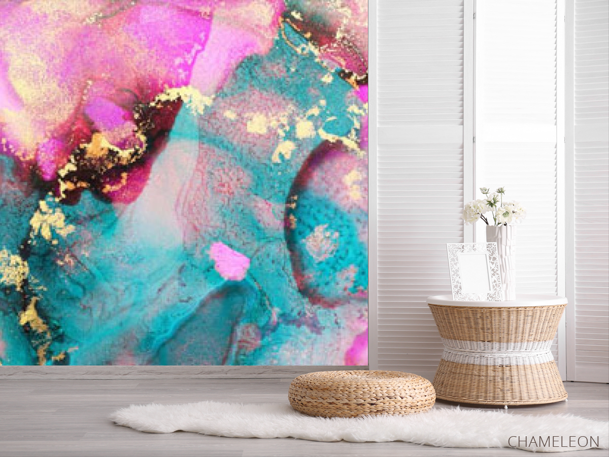 Фотошпалери бірюзово-рожевий флюїд з золотом, (арт. 33835) - купити в інтернет-магазині Chameleon