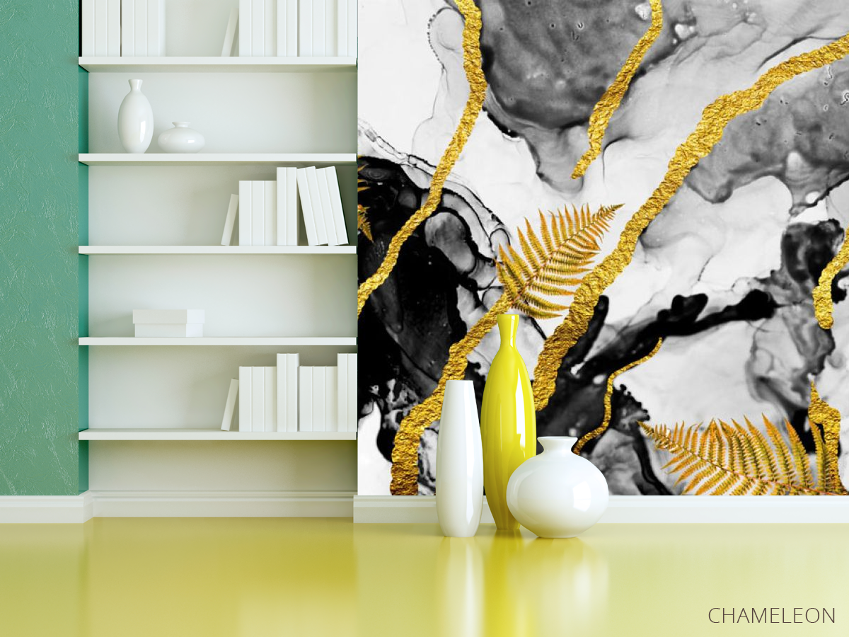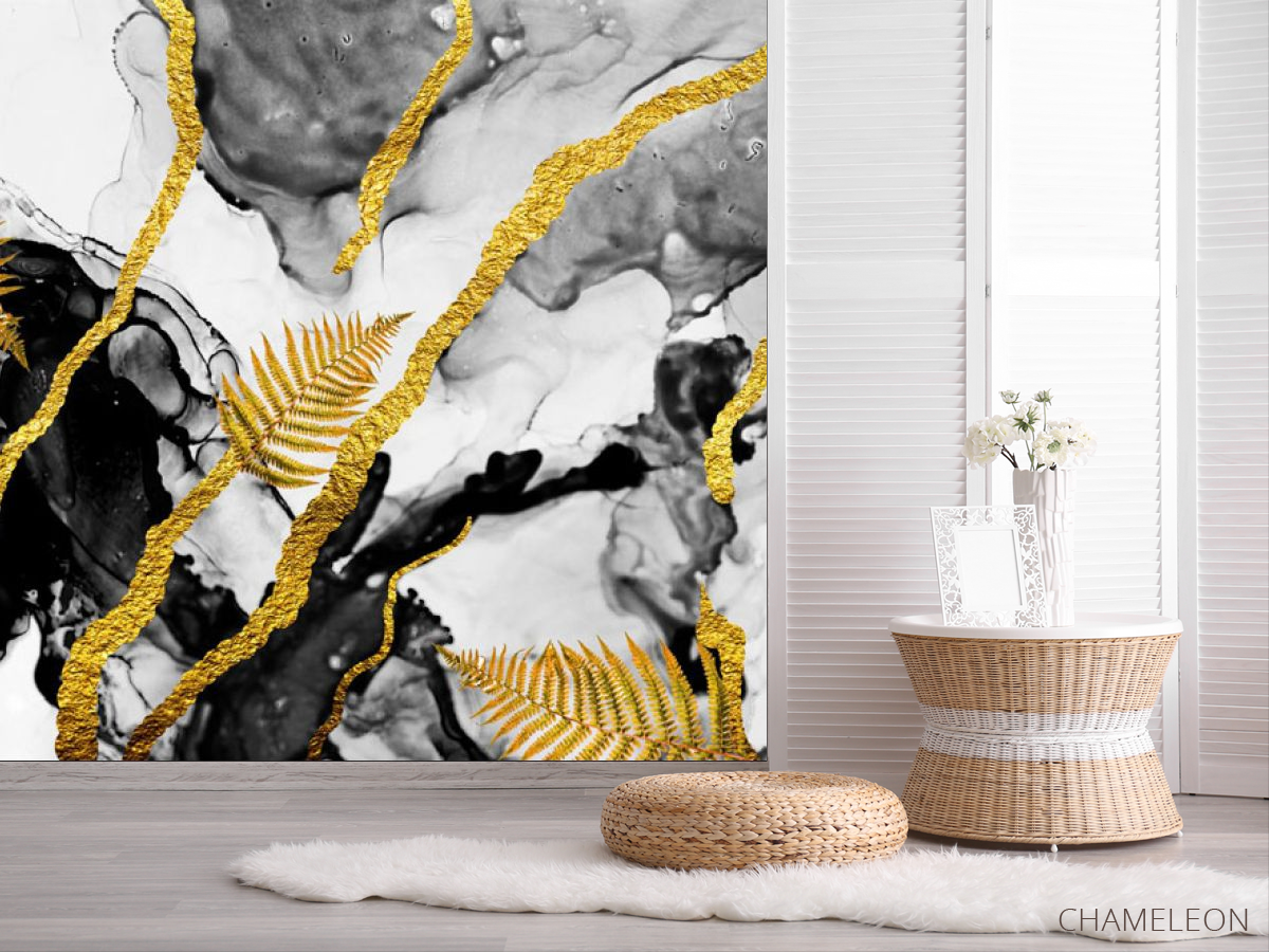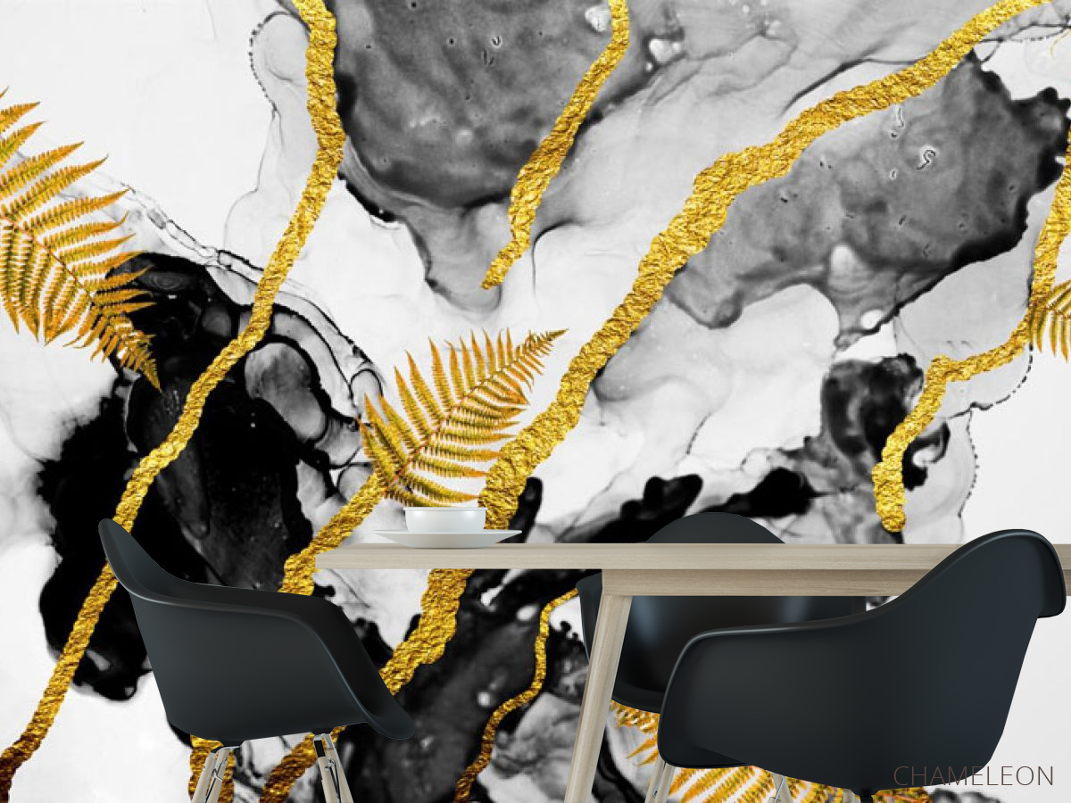 Фотошпалери чорні розводи флюїд арт з золотом., (арт. 33837) - купити в інтернет-магазині Chameleon