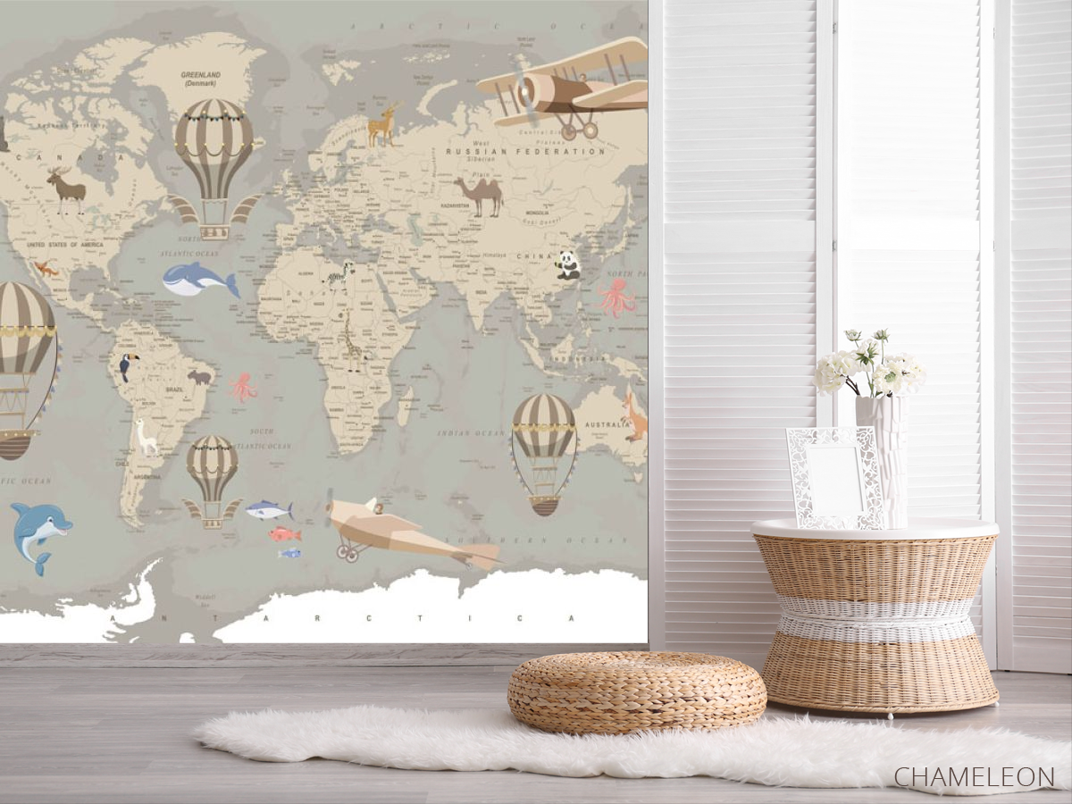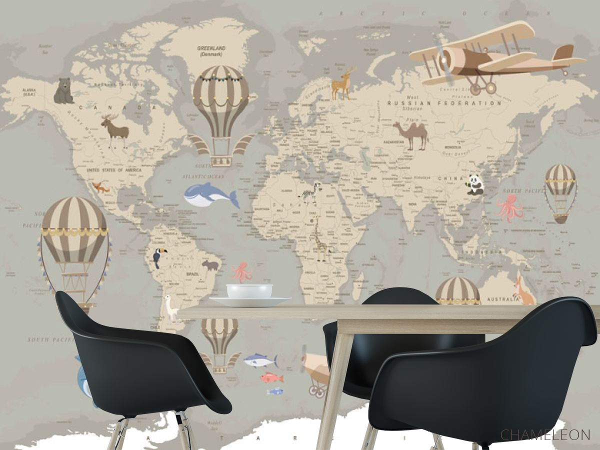 Фотошпалери Бежева карта з повітряними кулями 33910