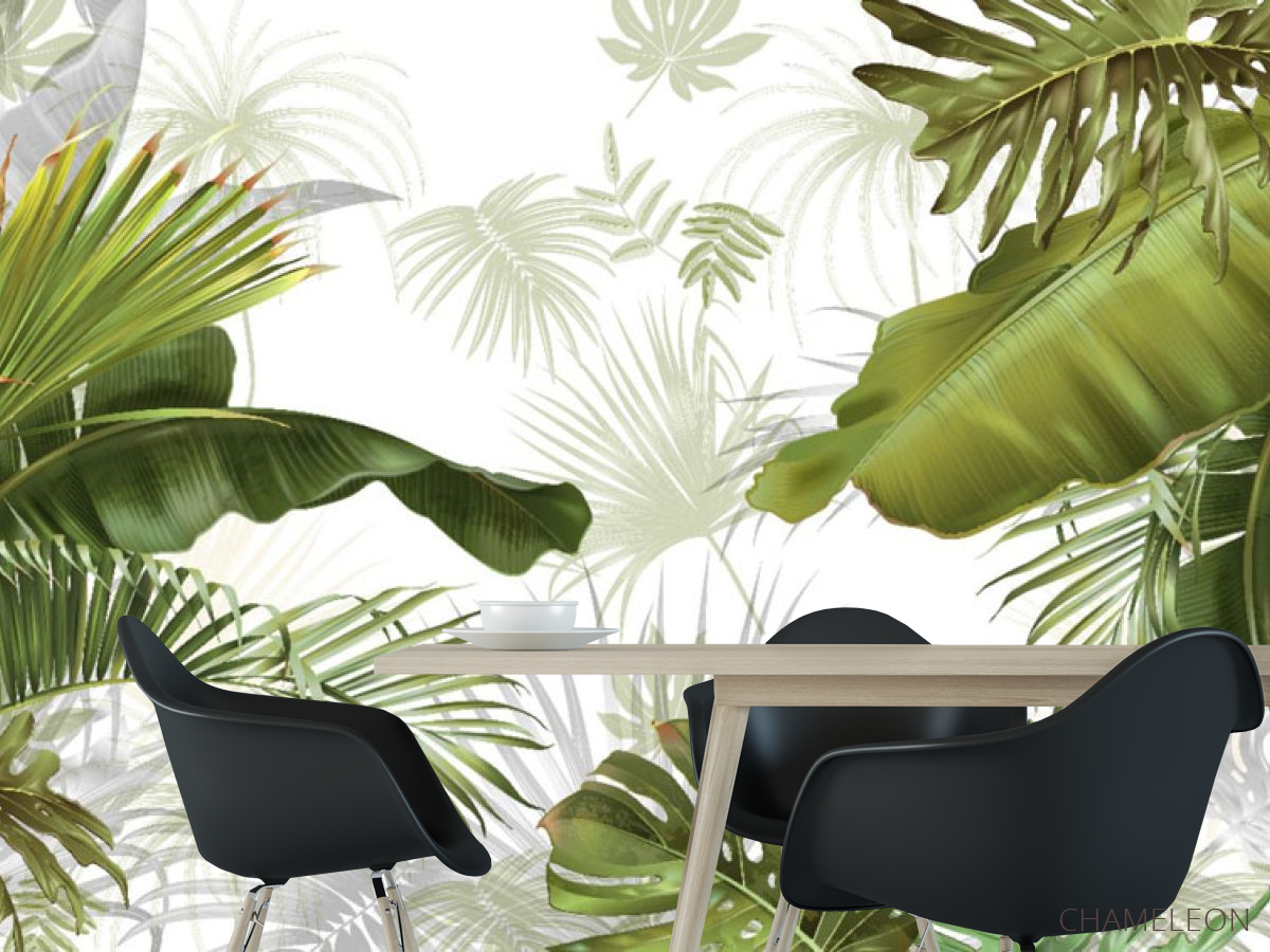 Сучасний інтер'єр в більшості випадків виконаний з пастельних відтінків і часом хочеться внести в них трохи яскравості. Фотошпалери тропічні листя стануть відмінним рішенням для тих, хто бажає розбавити стиль кімнати і надати йому природної бадьорості, барвистості і створити атмосферу жарких країн. Такі шпалери чудово впишуться в обстановку спальні, кухні або вітальні. Фотошпалери Тропічні листя додадуть в будинок комфорту і затишку, а також будуть радувати око протягом багатьох років. Шпалери виготовлені з матеріалів високої якості, не викликають алергію і не вигоряють на сонці. Ви можете вибрати паперову або флізелінову основу, але незалежно від цього, клеїти їх абсолютно легко: достатньо лише нанести клей на стіну і прикріпити полотно.
