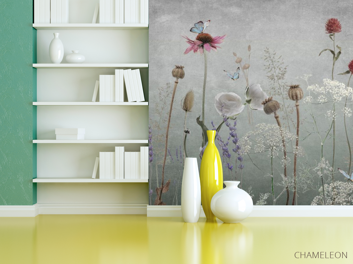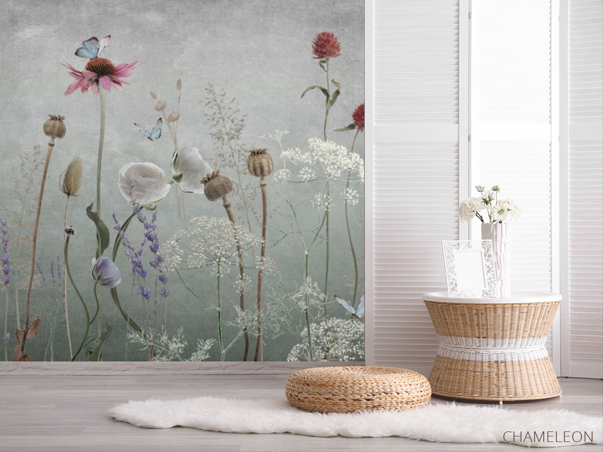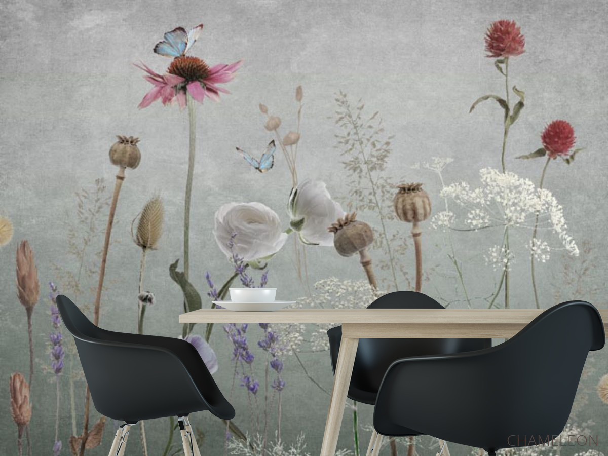 Фотошпалери польові дизайнерські квіти сірі