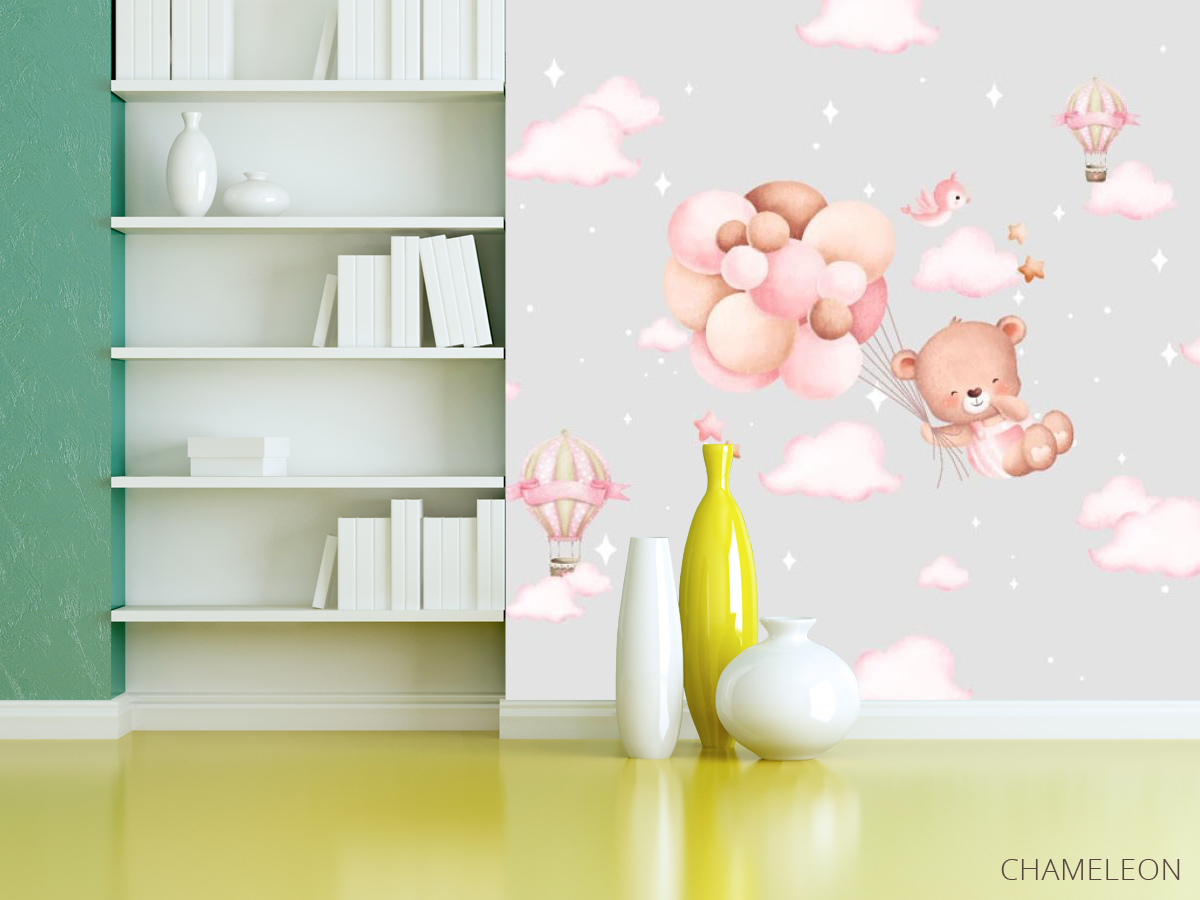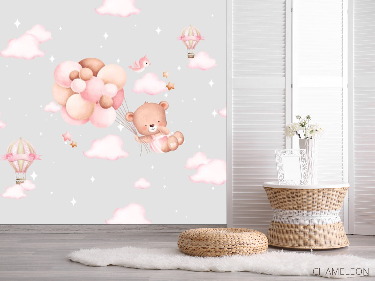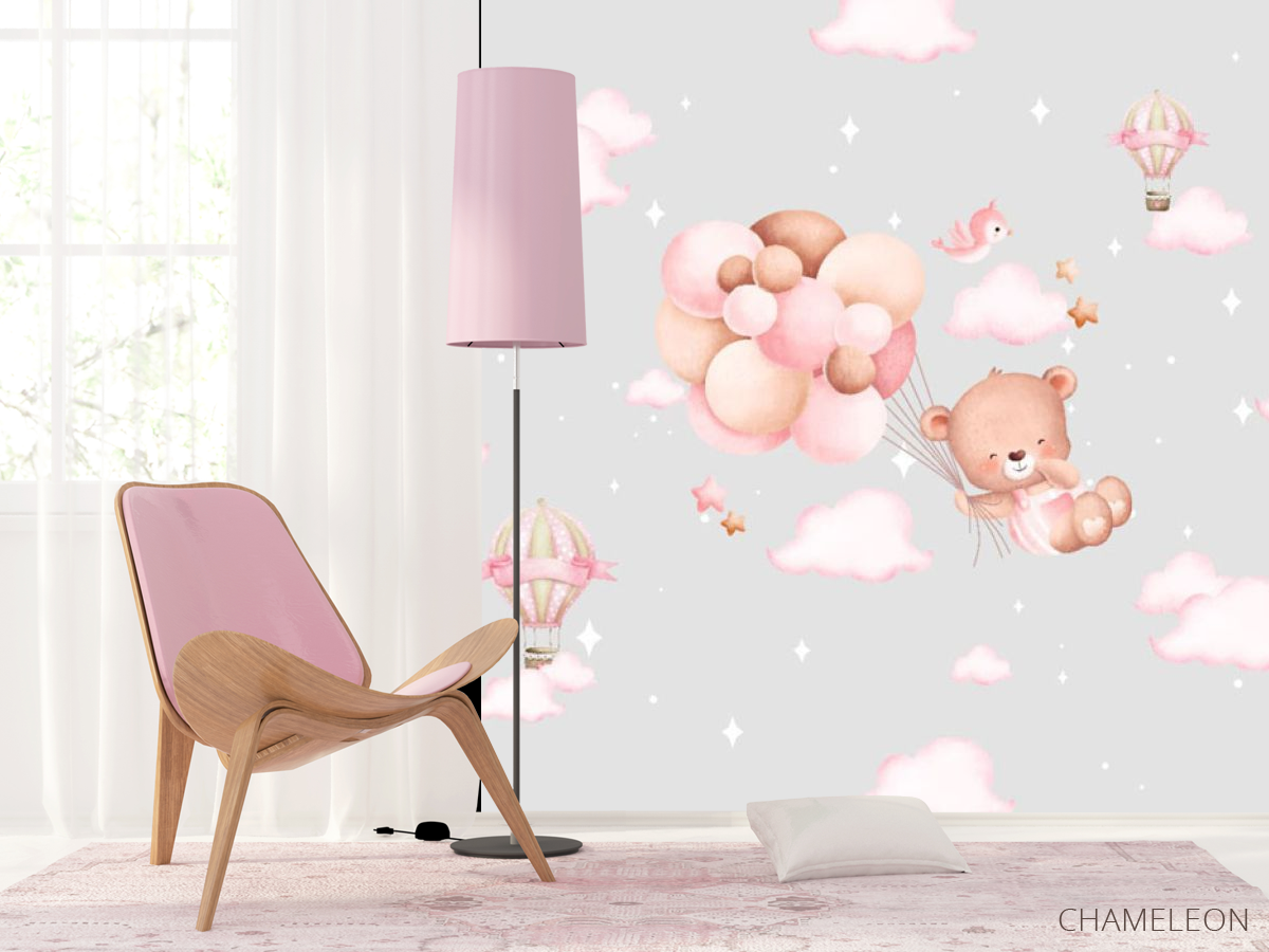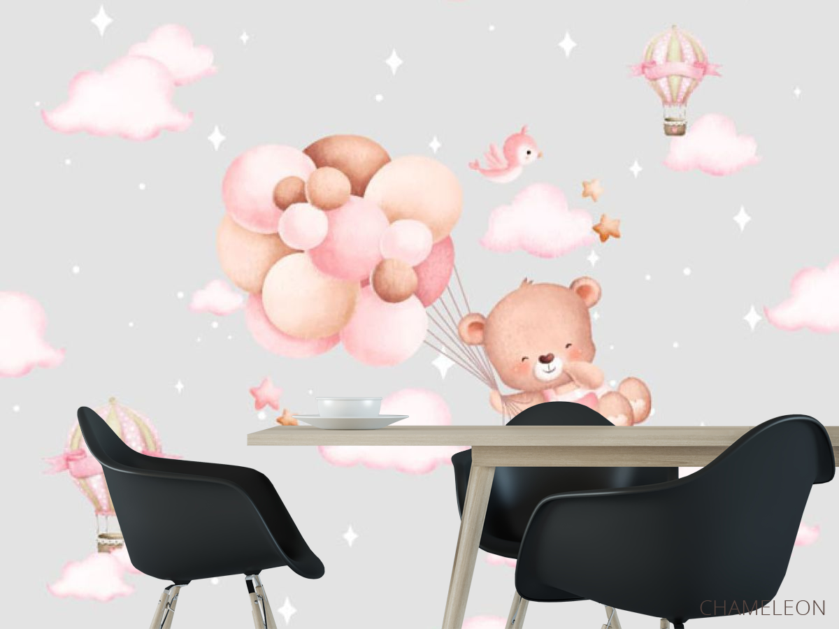 Фотошпалери мішка з кульками для кімнати дівчинки 34380