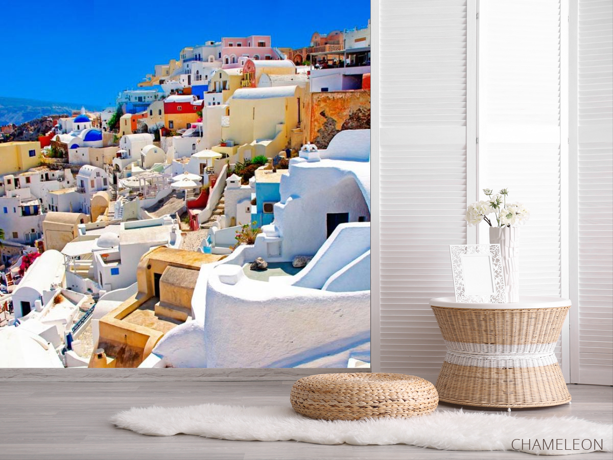 Санторіні - одне з тих самих місць в Греції, яке дізнається кожен. Цей Біло-синій Острів надихає і викликає захват. Фотошпалери Греція - це зображення унікальної старовинної архітектури на узбережжі найчистішої води. Це зображення стане невід'ємною частиною вашого інтер'єру, підкреслять вишуканий смак і додасть йому особливого шарму і оригінальності. Фотошпалери виготовлені з матеріалів високої якості, з паперовою або флізеліновою основою. Вони стійкі до вигорання і невеликих пошкоджень. Зображення дуже барвисте, яскраве і чітке. Фарба не вигоряє на сонці, не викликає алергію і не виділяє токсичних речовин. Фотошпалери Греція ідеально підійдуть для будь-якого приміщення: спальня, вітальня, кухня. Додайте частинку сонячної Греції в ваш будинок.
