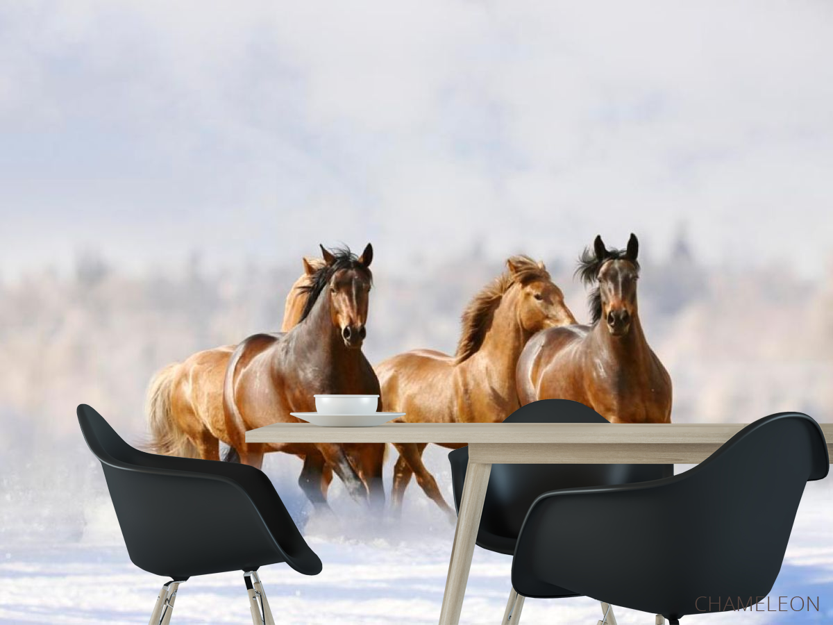 Фотообоі коні - це прекрасне рішення для прикраси будинку або тематичного закладу. Із зображенням милої конячки в поле або біжить табуна де-небудь в горах ви точно зможете надати приміщенню оригінальність і підкреслити смак. Фотошпалери Коні внесуть шматочок природи і огорнуть своєю енергетикою. Свобода і впевненість цієї тварини не залишить байдужим нікого і допоможе створити комфорт і затишок в кімнаті. Шпалери виготовлені з матеріалів високої якості, основу для них ви можете вибрати або паперову, або флізелінову. Вони абсолютно безпечні, не викликають алергію і стійкі до невеликих пошкоджень. Фотошпалери клеяться без особливих зусиль-достатньо лише нанести клей на стінку і прикріпити полотно.